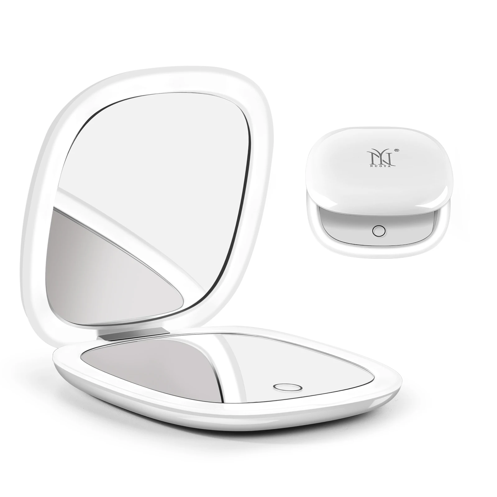 Compact Small Mini Gift Vanity Table Folding LED Lights Portable Hand Held Pocket Makeup Mirror 1X 10X magnifying