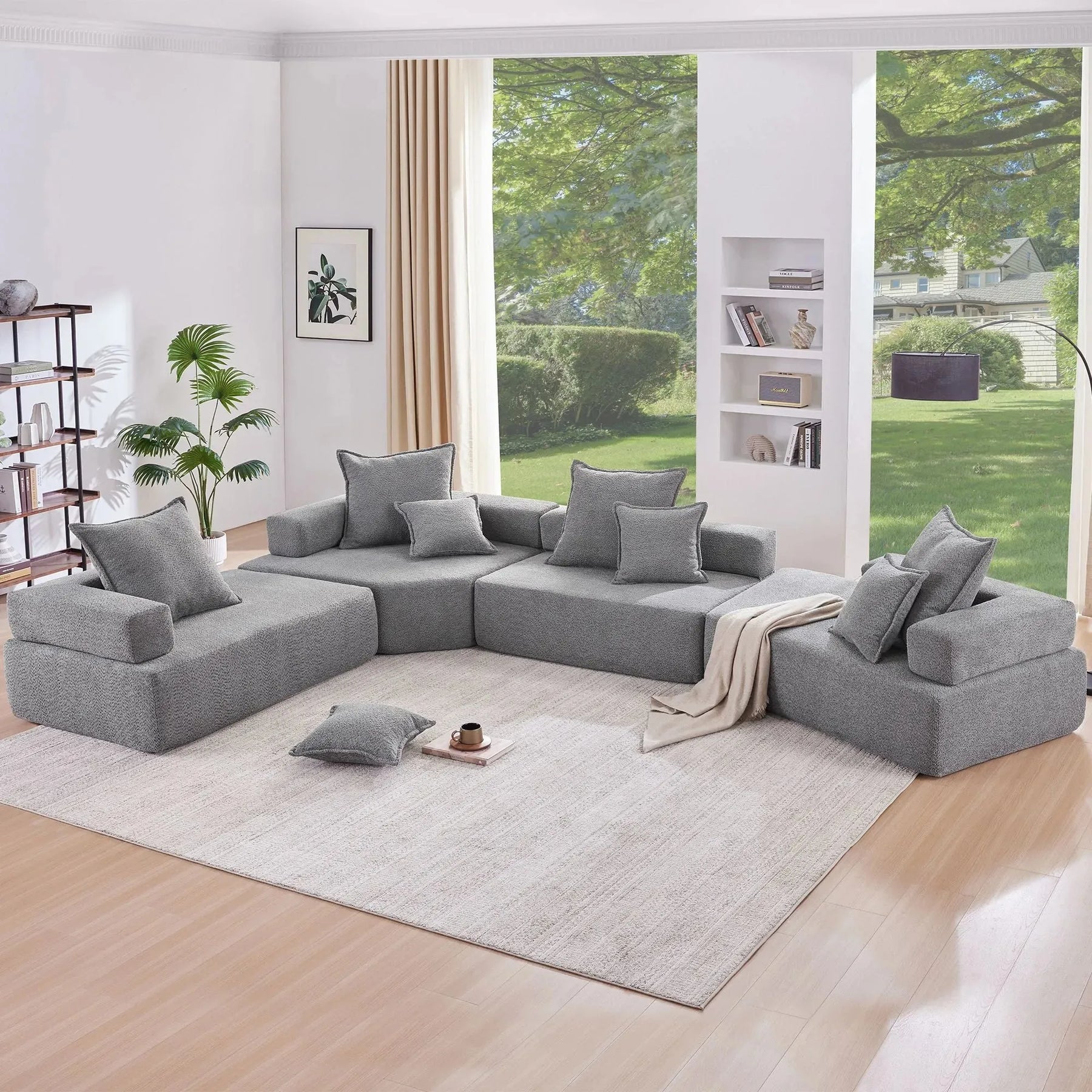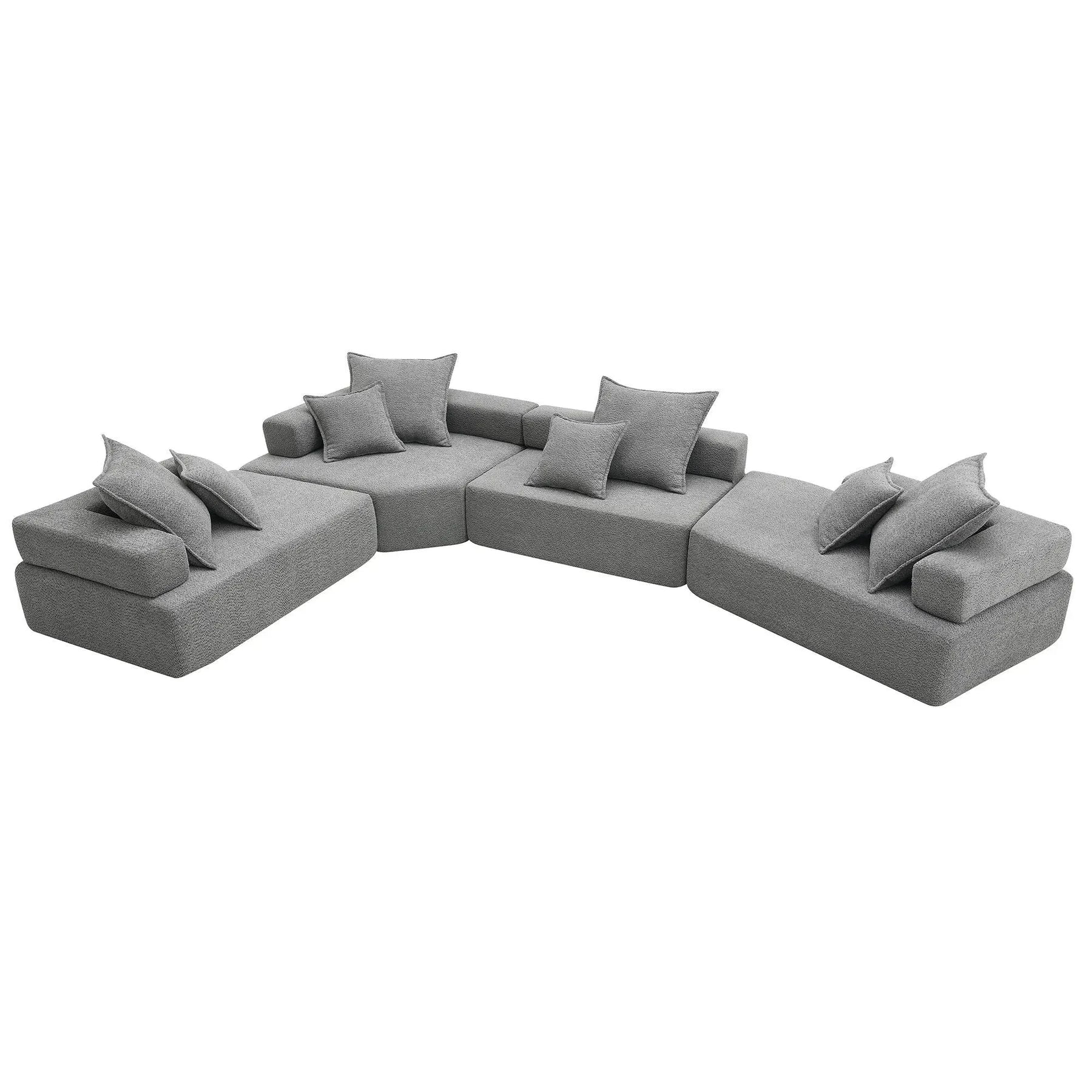 Oversized 4-Piece Modular U-Shaped Sectional Sofa – Luxury Bouclé Floor Couch Set with Foam-Filled Comfort | Trufairs