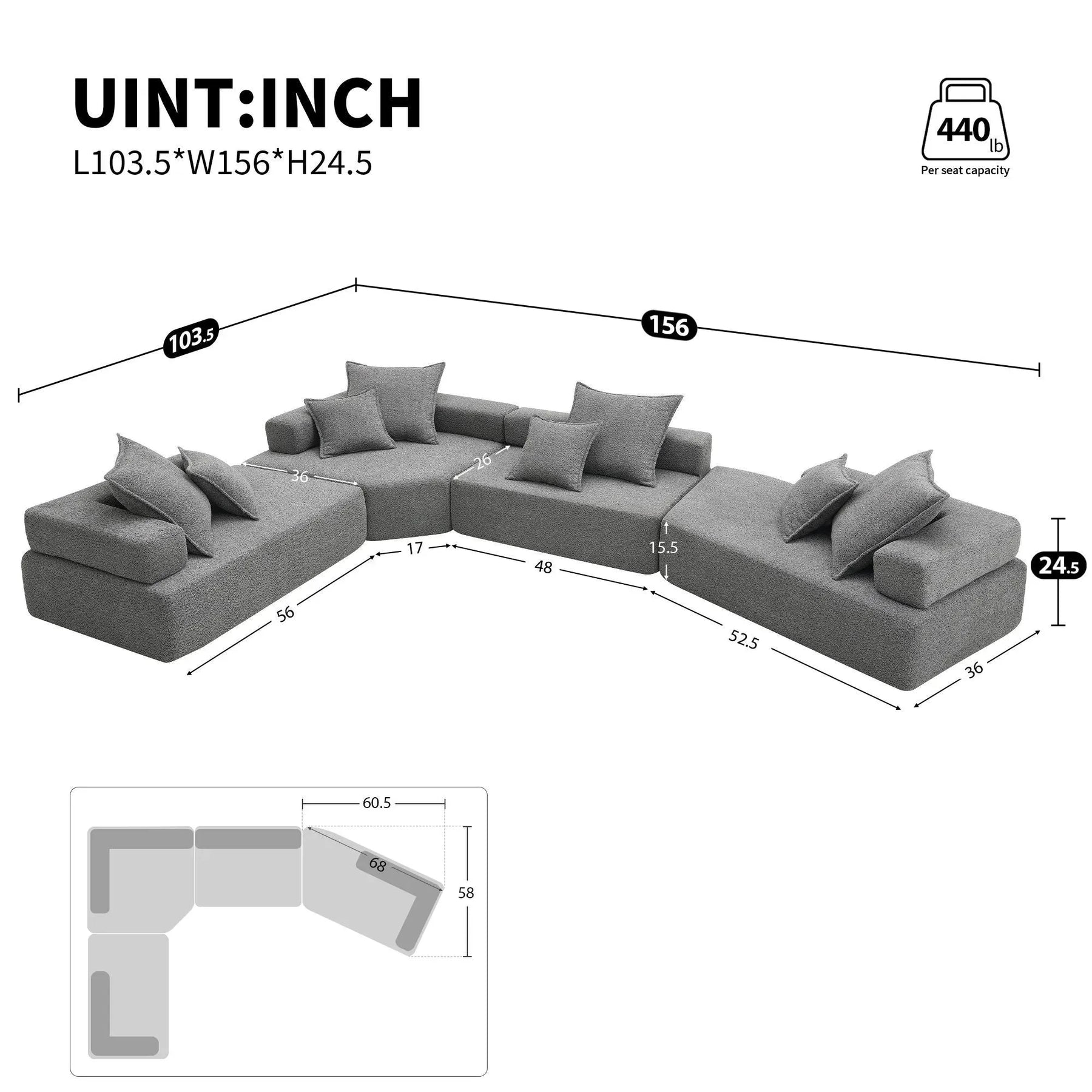 - Included in Box: Modular sofa pieces, assembly instructions, accent pillows