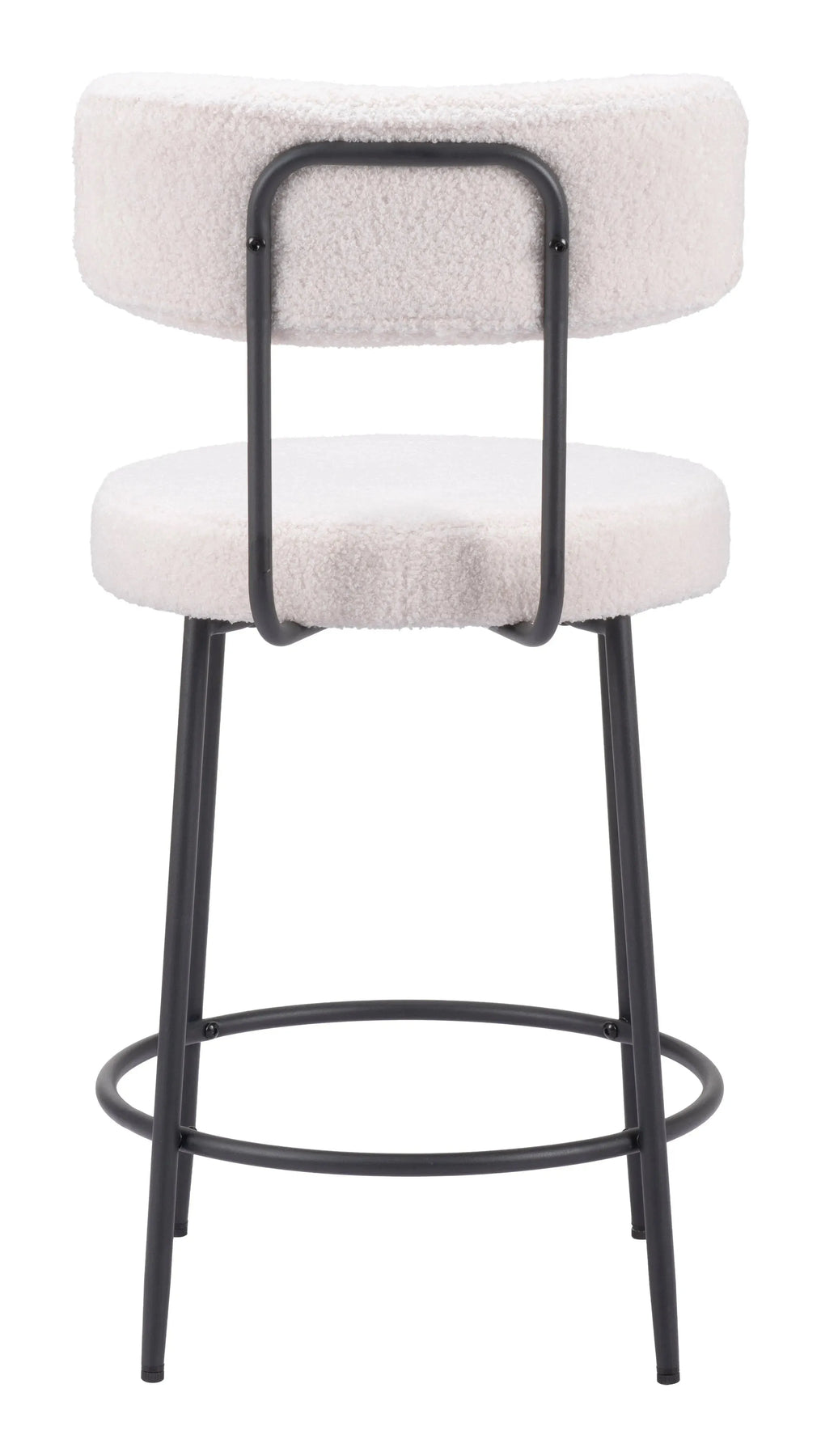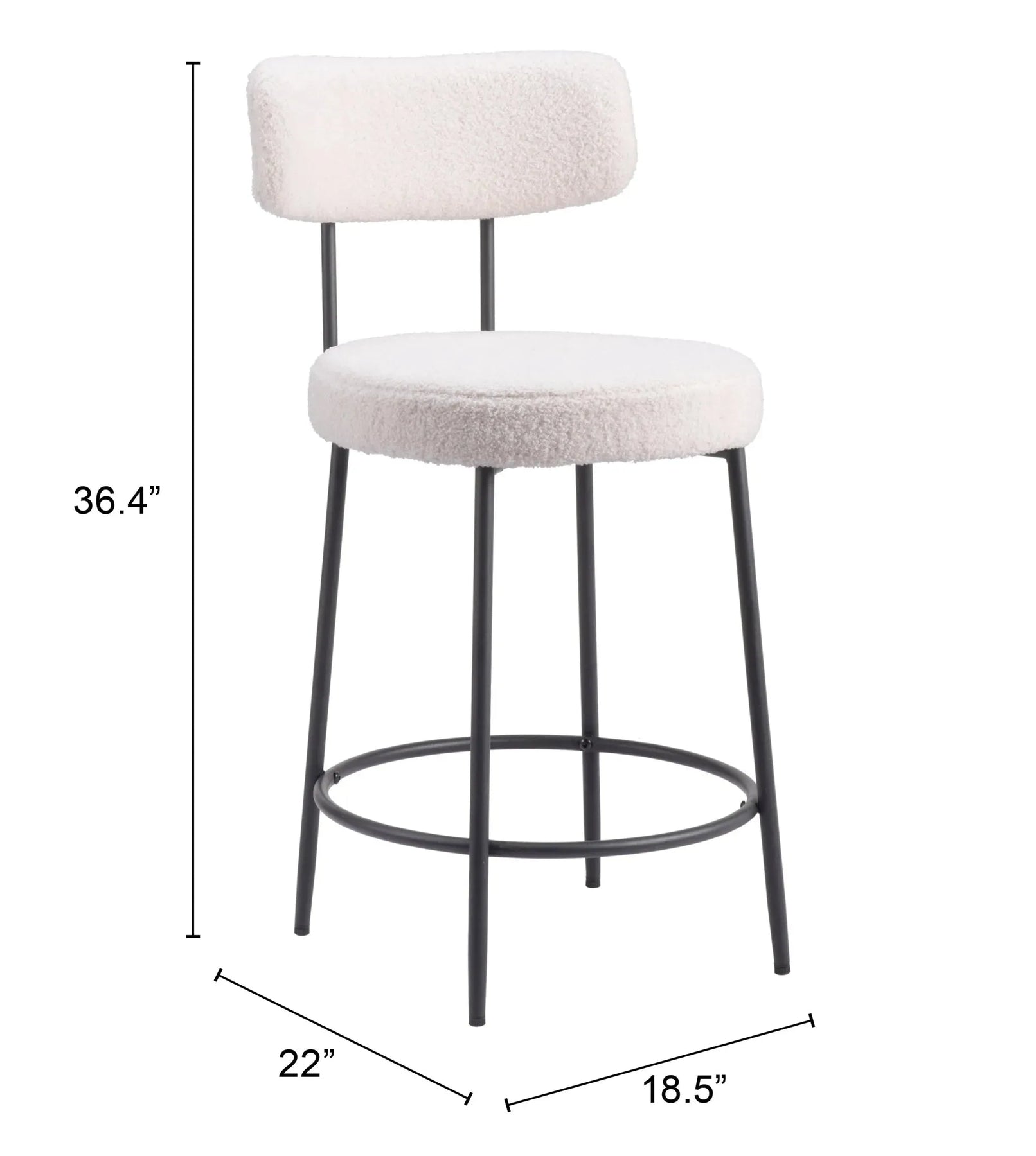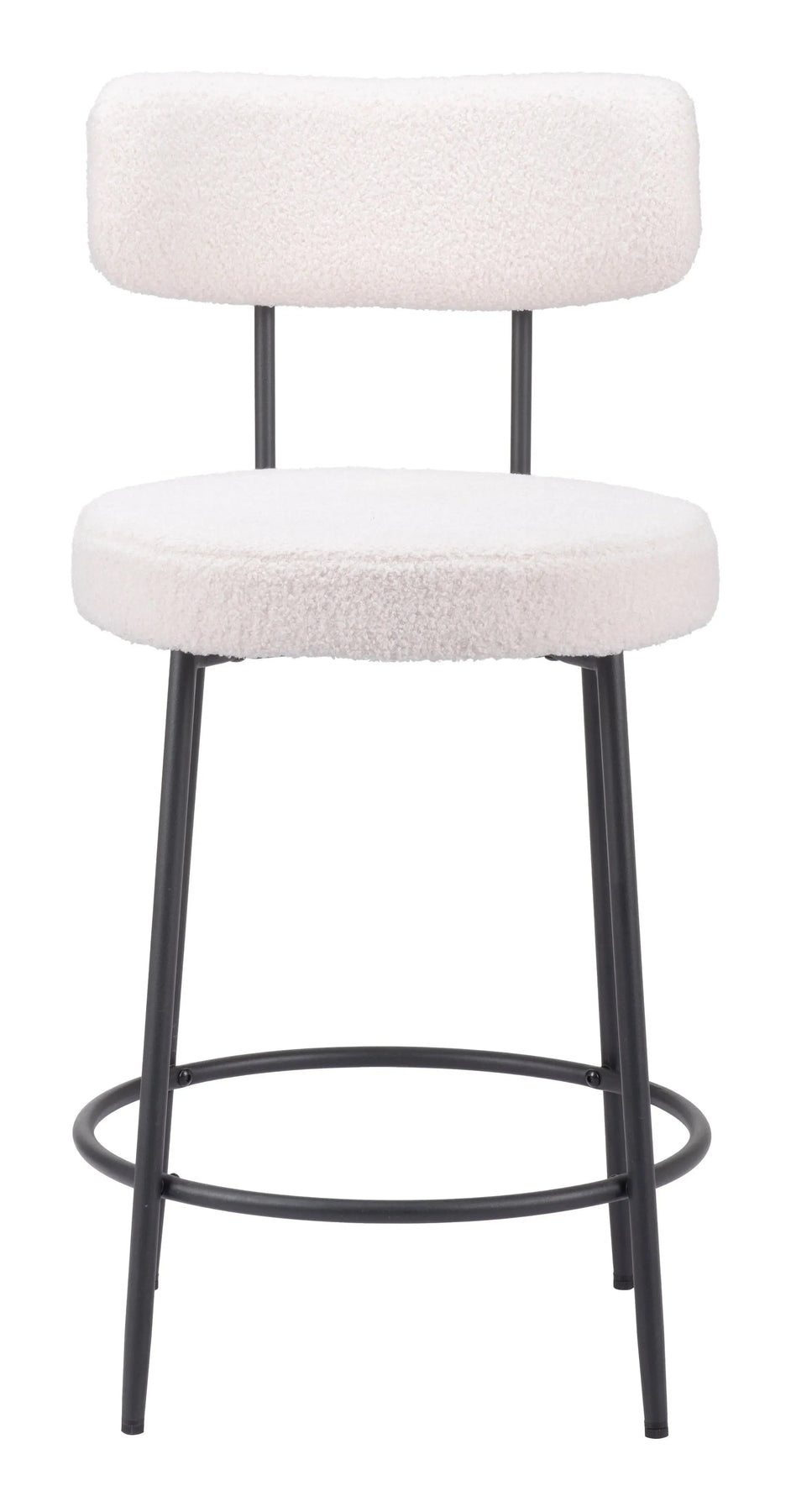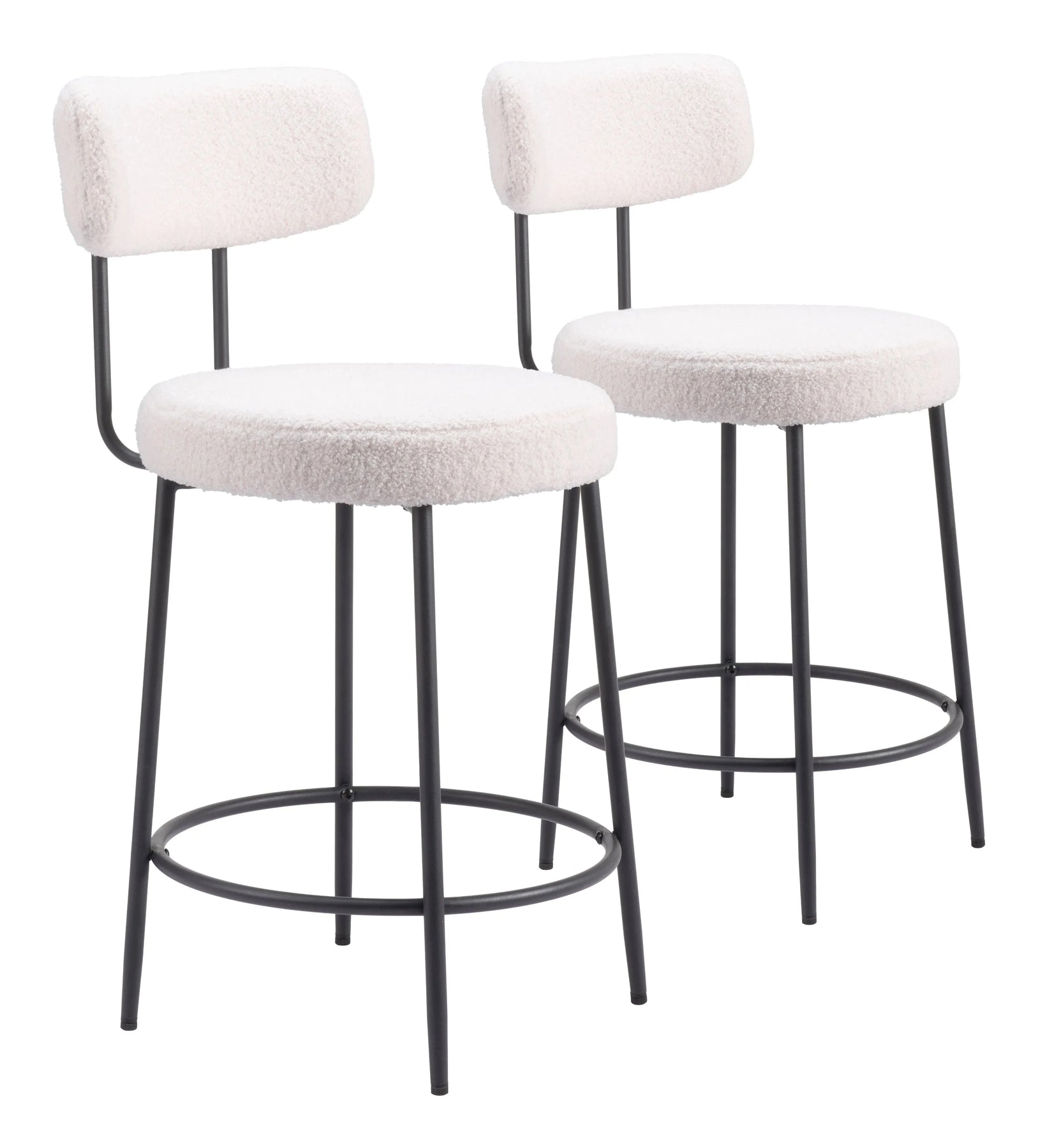 Blanca Counter Stool (Set of 2)The Blanca Counter Stool is a stunning combination of elegance, comfort, and durability, in a perfect addition to any modern or classic space. Designed with a minimalist velvet finish, this sleek Ivory tone elevates kitchen islands, high-top dining tables, or home bars. Constructed with durable, easy to maintain 100% Polyester upholstery for long-lasting use with a touch of comfort. These bar stools feature Plywood and Steel construction, which adds stability and support, making them a reliable choice for everyday use. With its ergonomic high backrest, cushioned seat, and sleek silhouette, the Counter Stool offers both style and functionality, enhancing any place or address seamlessly and complementing a variety of décor styles.
