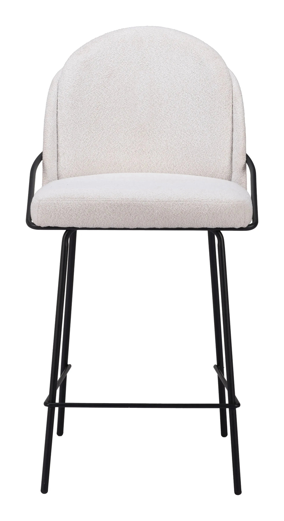 Jambi Counter Stool Ivory — Perfectly between elegance and durability, the Jambi Counter Stool is designed to elevate any space. The soft Ivory fabric, made of 100% polyester, creates an elegant look with added comfort and low-maintenance. Provides strong support and lasting stability while adding a sleek touch to your space with this stylish plywood and steel frame counter stool. Whether set at a kitchen island, home bar, or counter-height dining table, the Counter Stool seamlessly integrates into different decor styles, from modern to classic. The elegant design and chic Ivory shade give any home an inviting and sophisticated feel.