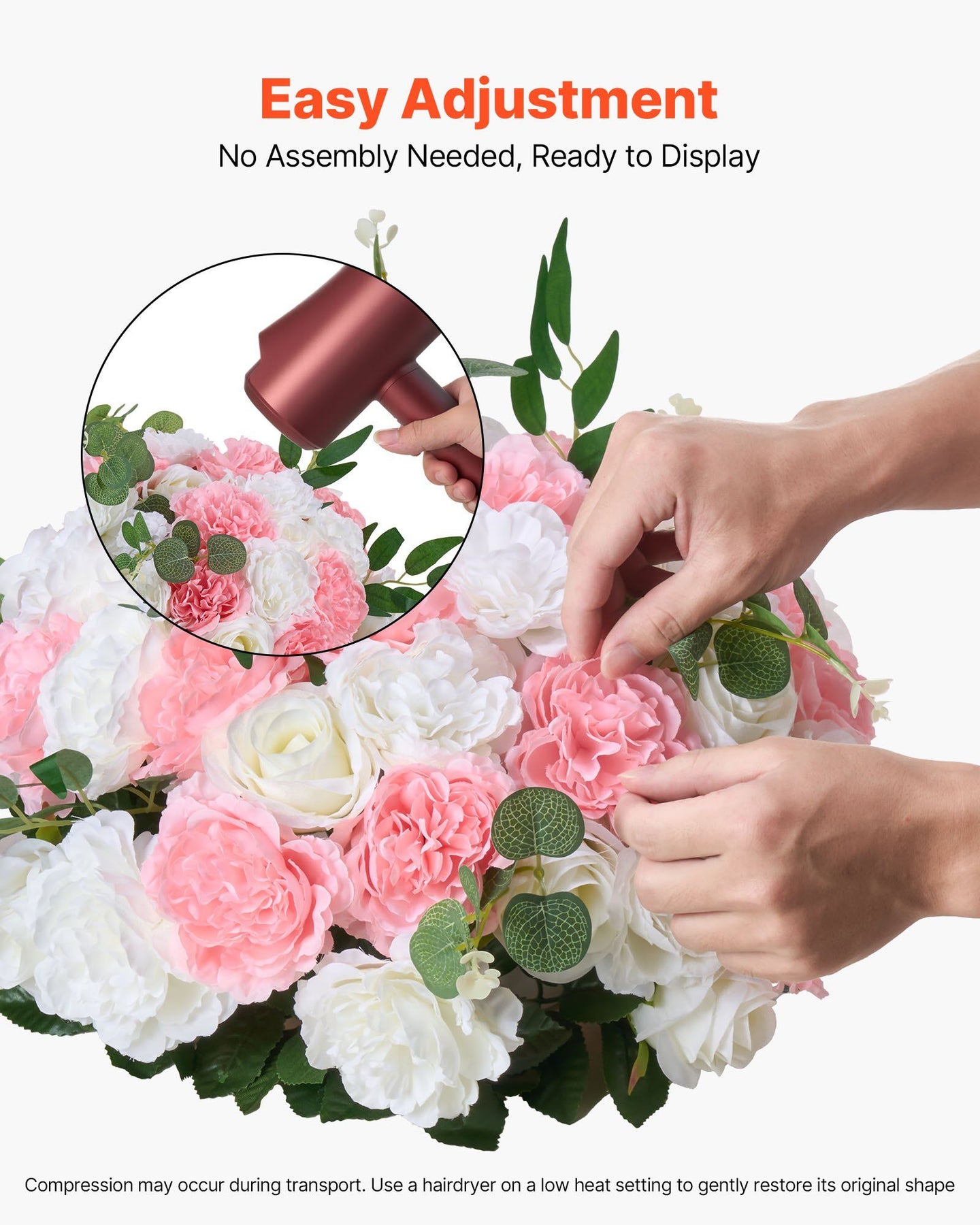 Elevate your event decor with these vintage pink and white silk flower balls—honestly, they’re a no-brainer for weddings, showers, or any romantic celebration on your calendar. Each arrangement features a blend of dusty-pink and crisp white roses, styled into lush, eye-catching half-spheres that make head tables, aisles, and photo backdrops look timeless and refined. Whether you’re hosting in a rustic barn or a grand ballroom, this balanced palette adapts seamlessly, giving you the look of a full bouquet without the headache of wilting fresh flowers. Designed for convenience, each pre-styled cluster combines silk petals, greenery, and filler florals, so planners can achieve consistent, high-impact decor quickly—no fuss, no stress. Guests will appreciate the picture-perfect setting, and you’ll appreciate not having to worry about last-minute floral emergencies.