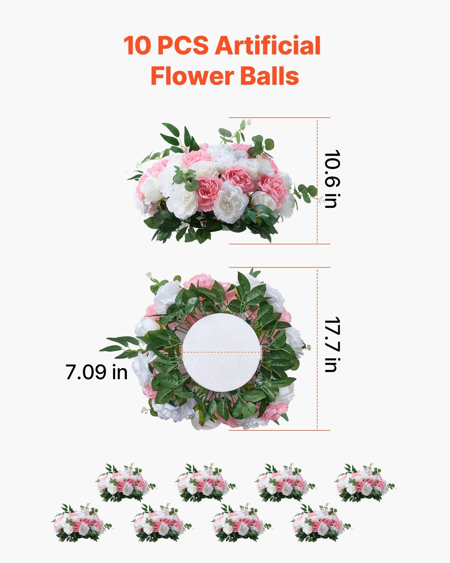 - Set of 10 mixed pink-and-white silk flower balls, pre-assembled.