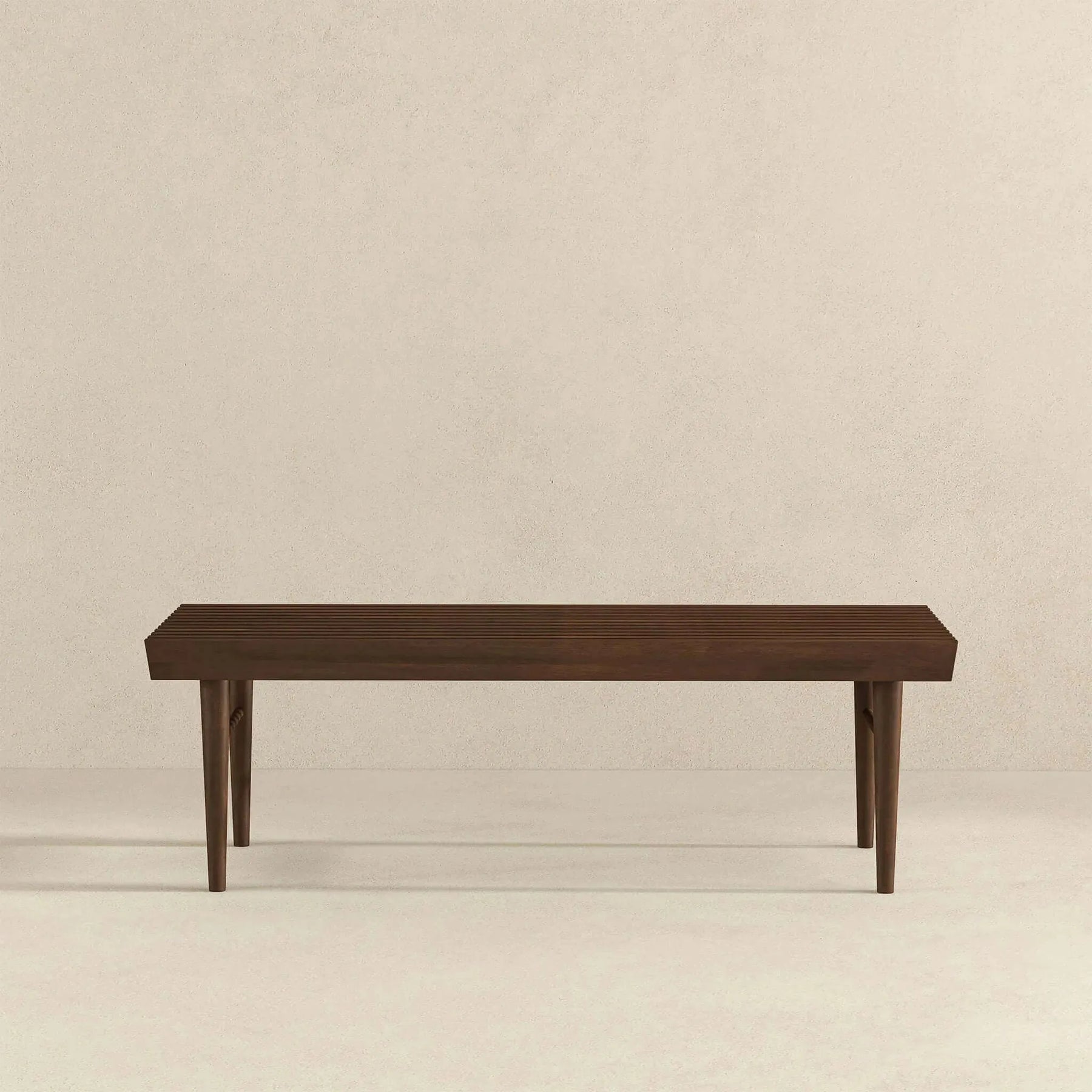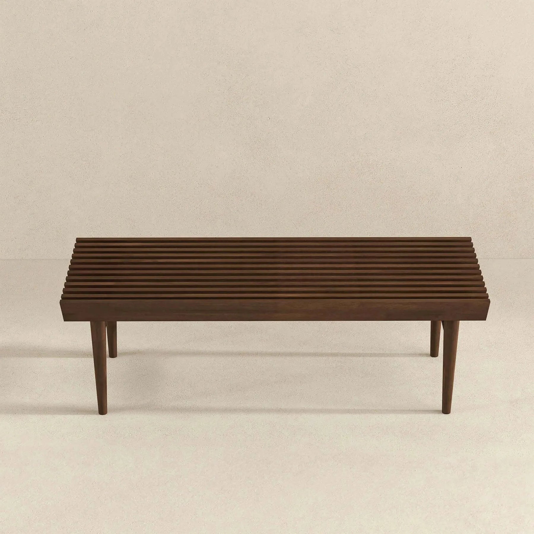 Give your home an extra touch of sophistication and style with the Mia Mid Century Modern Solid Wood Bench, the perfect blend of aesthetics and functionality. Its versatile brown finish works with just about any color palettes, and provides a seamless fit in any environment. Its solid wood construction ensures it is sturdy and stable constructs that will be a faithful companion in your home for years to come.. This bench can serve a purpose whether as an additional lounge area, an accent piece, a decor accent, or a statement piece. Its sleek lines and timeless design captures mid-century modern style, bringing sophistication with approachability to your home.