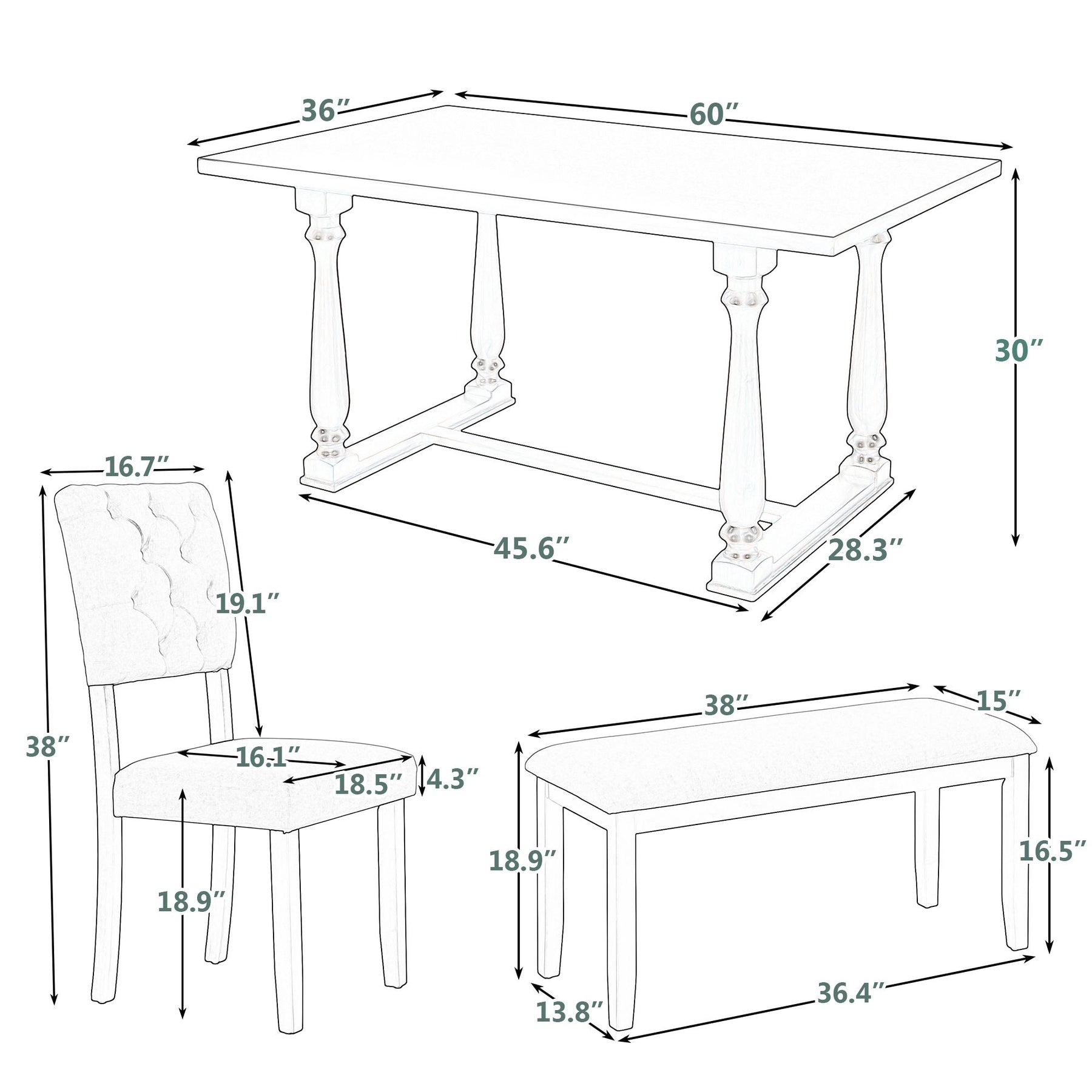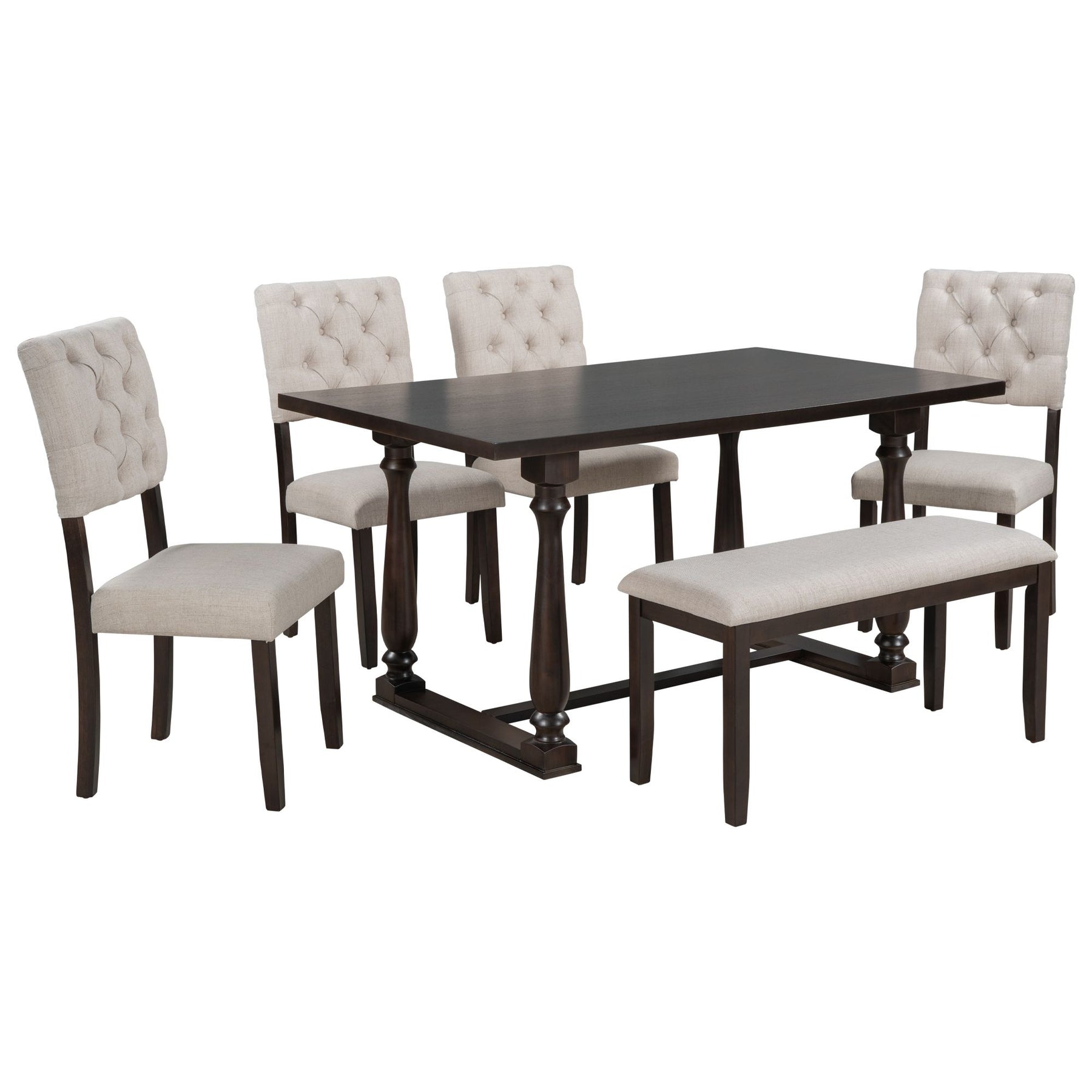 Crafted from durable wood and upholstered with breathable, soft fabric, this dining set stands up to daily family use without compromising on style. The high-density foam in the chairs and bench offers lasting support, and the smooth tabletop is designed to resist scratches and spills. Assembly is straightforward, thanks to included hardware and clear, illustrated instructions. Maintenance is hassle-free—just a quick wipe with a damp cloth keeps everything looking fresh. Choosing Trufairs means you benefit from carefully vetted craftsmanship, secure packaging, and a seamless delivery process. Your new dining centerpiece arrives ready to seat six in comfort and style, providing long-lasting value for your home.