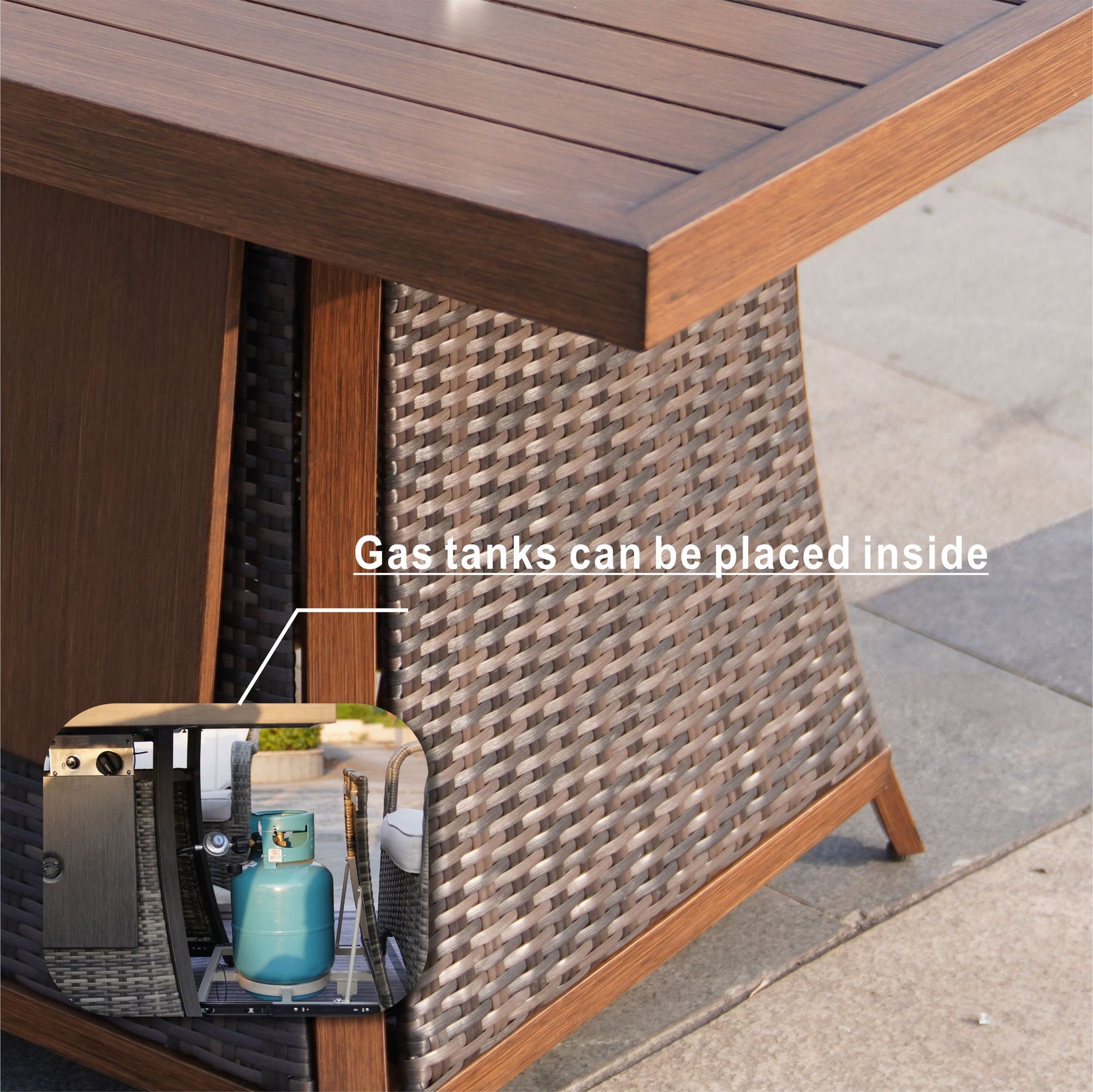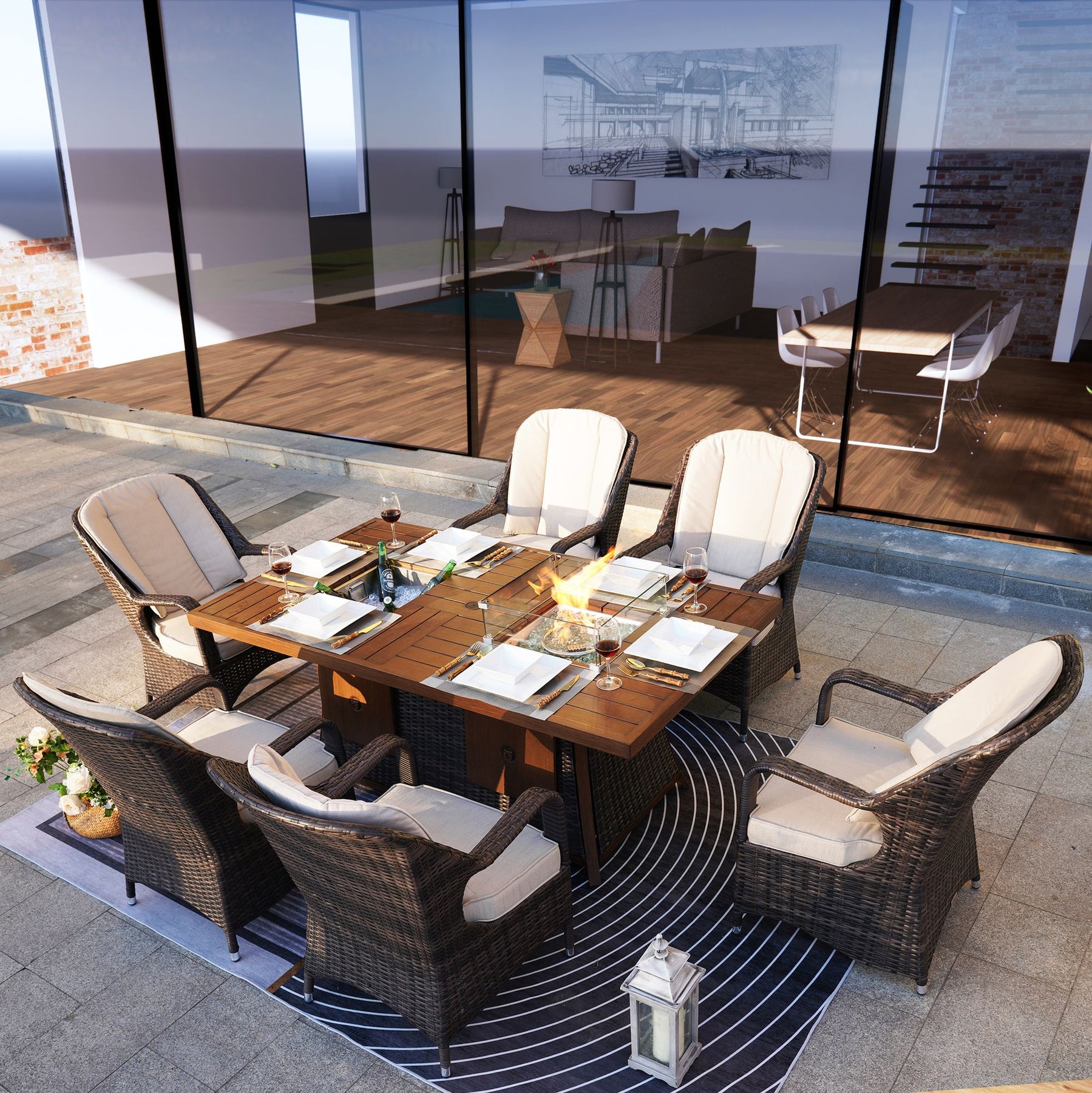 Seaside Wicker Firepit Dining Set – Built-In Ice Bucket & 50 000 BTU Gas Table | Patio Furniture | Trufairs
