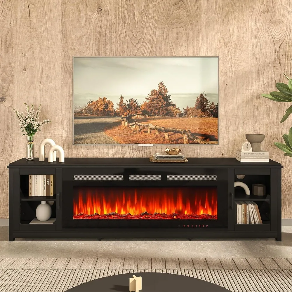 80" Fireplace TV Stand, 50 Inch Electric Fireplace & Modern Entertainment Center, TV Console with Adjustable Shelf & Glass Door