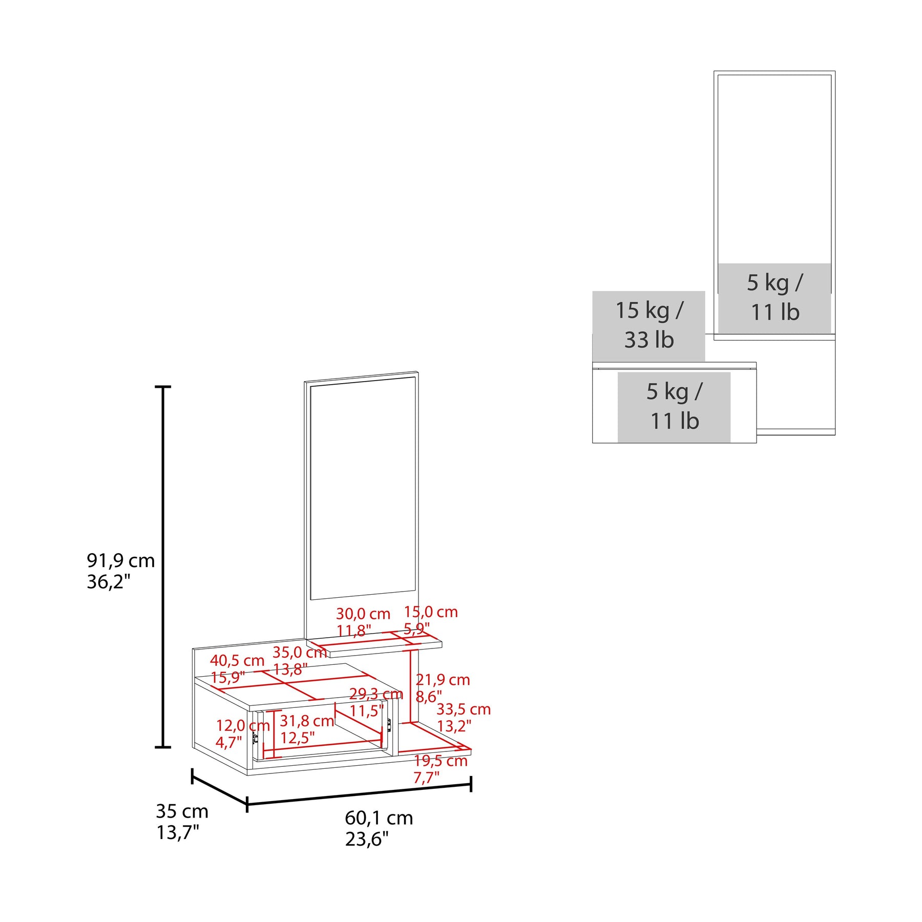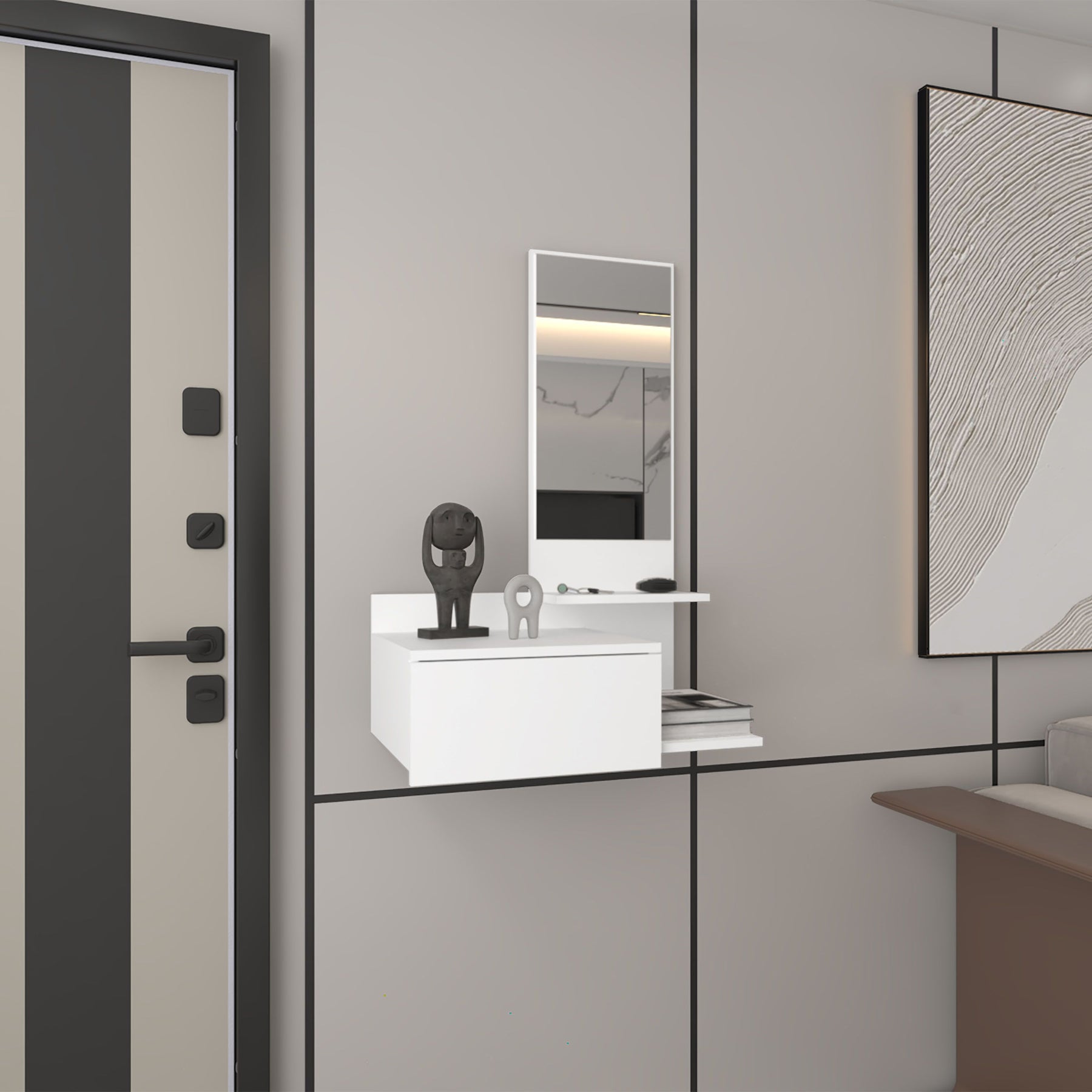 Floating Hallway Cabinet 36.2" H, 1 Drawer, 3 Shelves, 1 Mirror, White