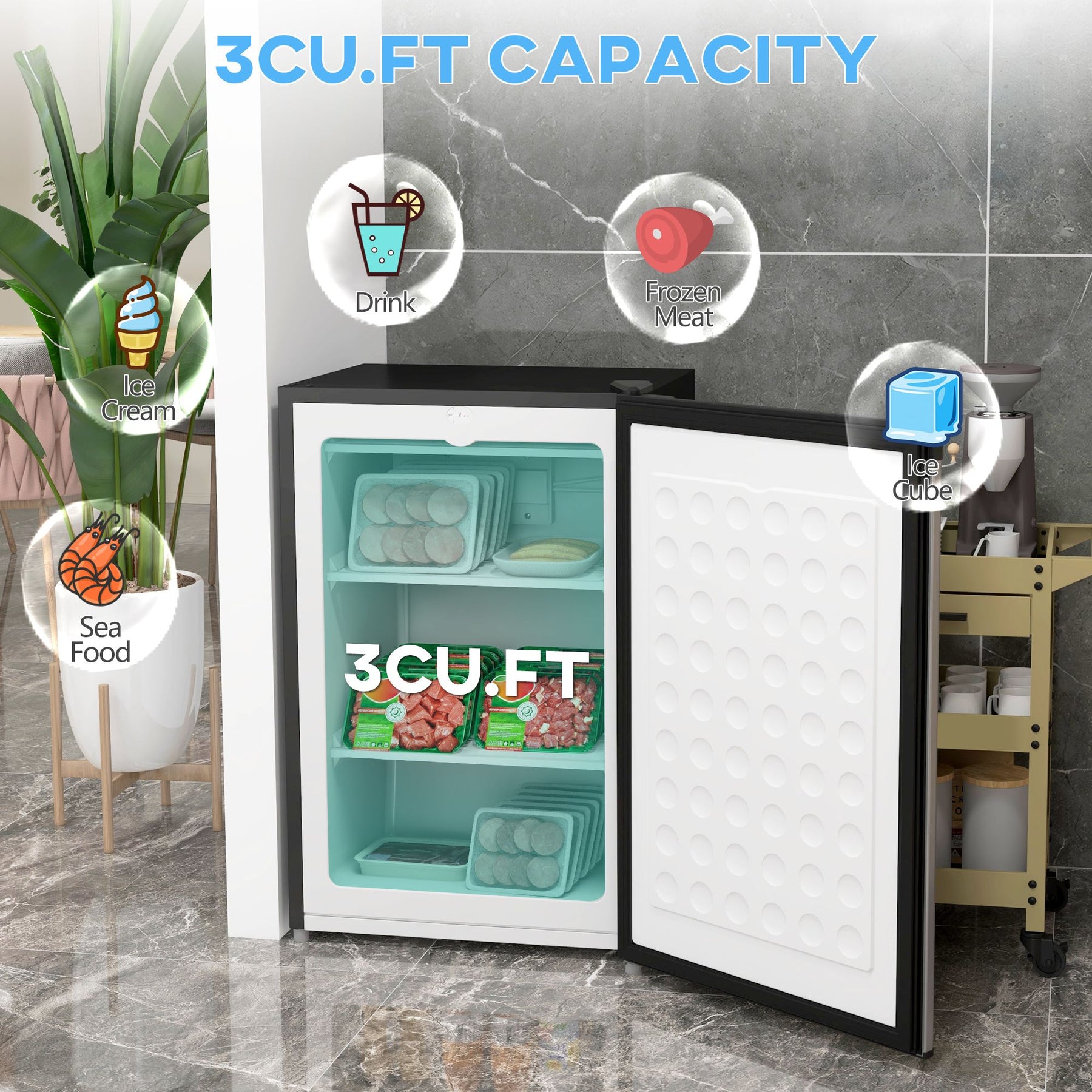 HOMCOM Upright Freezer, 3.0 Cubic Feet Compact Mini Freezer with Reversible Single Door and Adjustable Thermostat, Small freezer for Home, Dorm, Apartment, Home Office, Silver