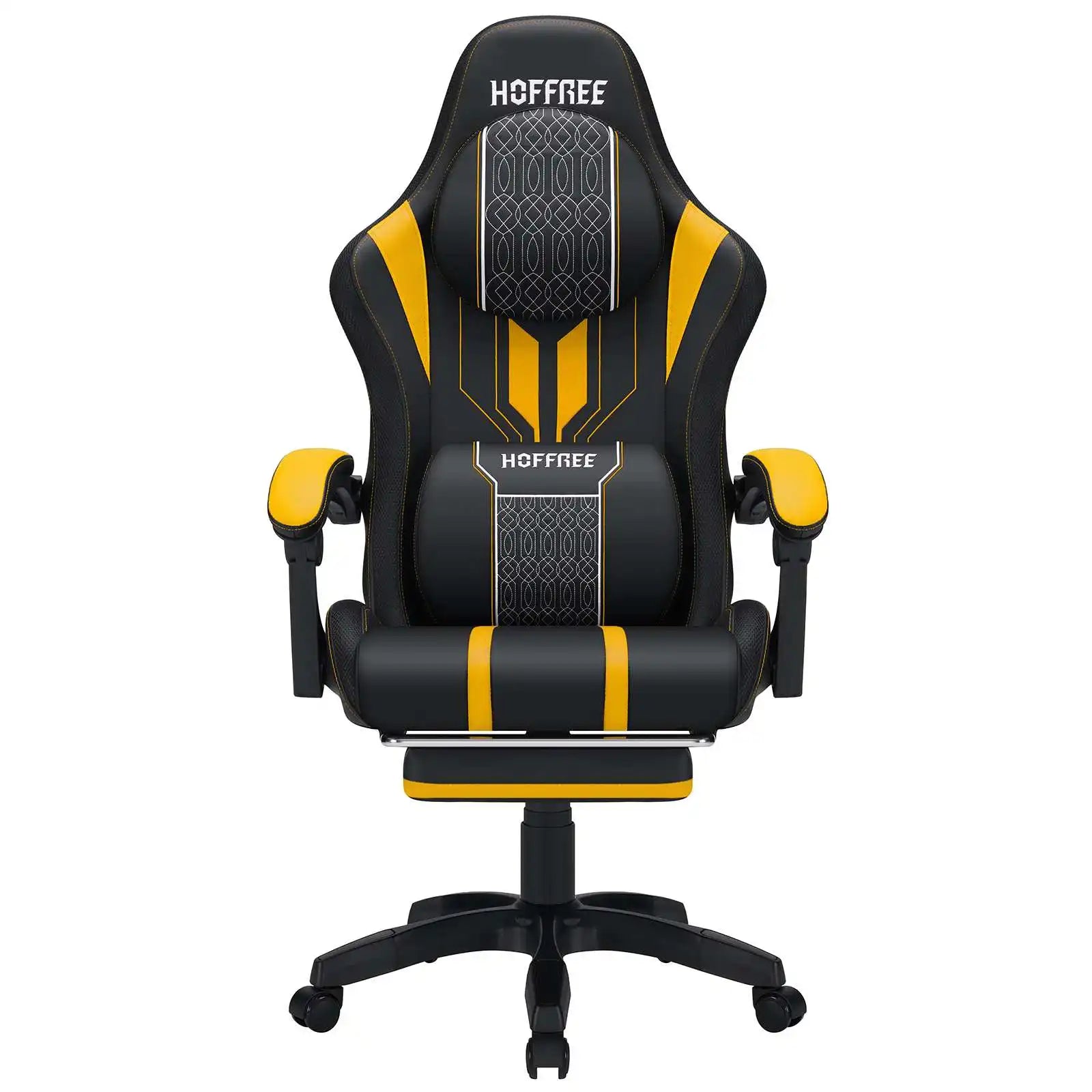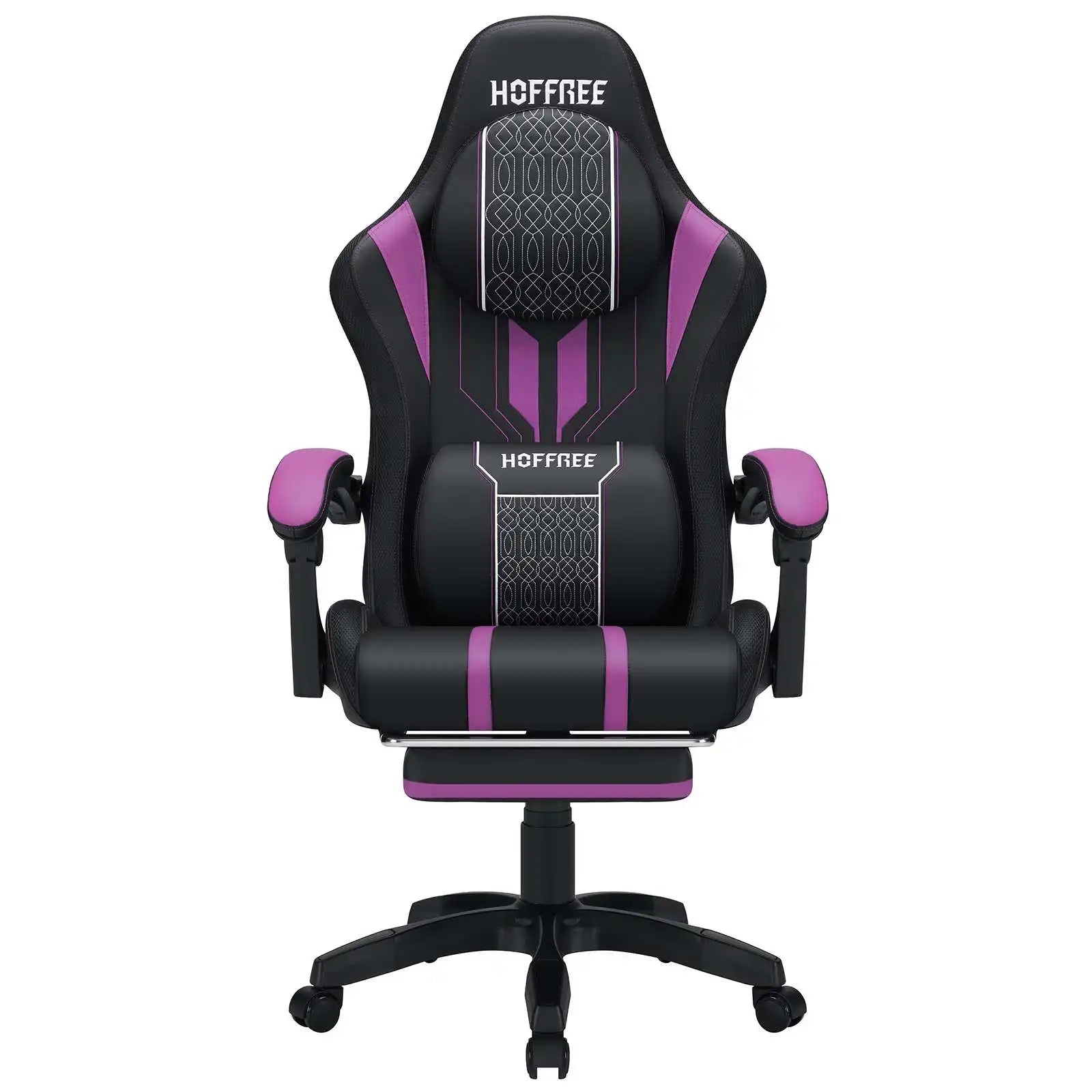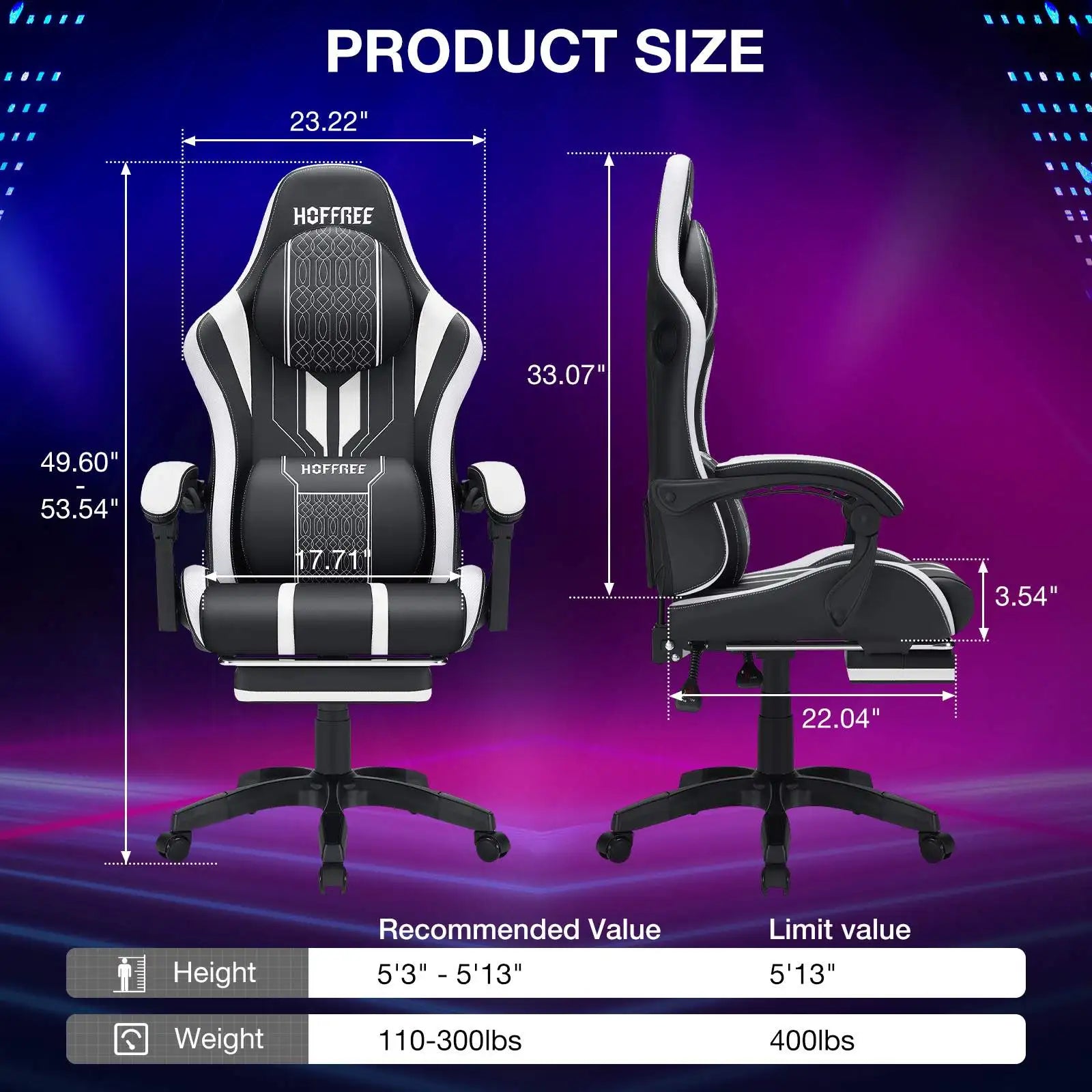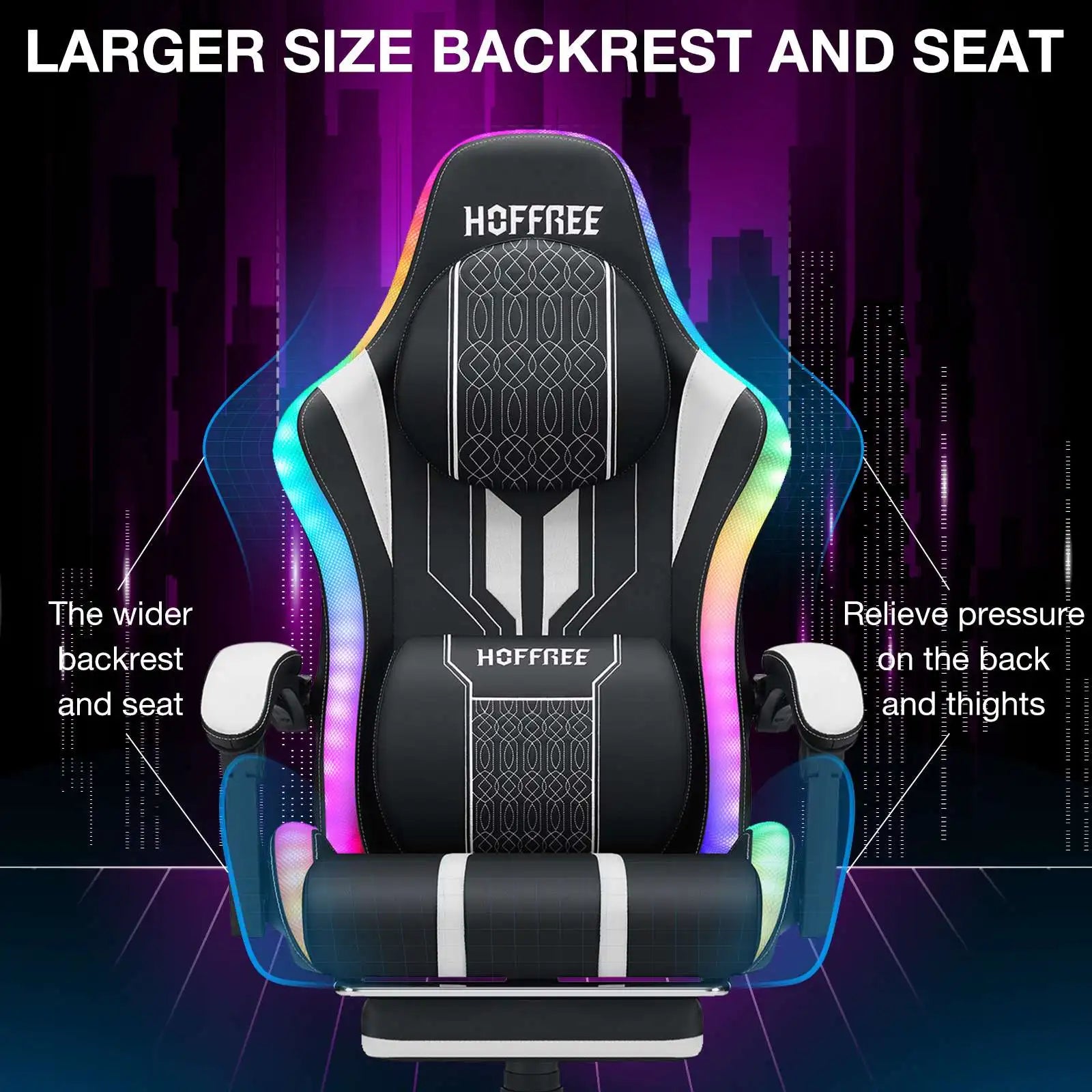 Gaming Chair Office Chair Ergonomic Bluetooth Speaker LED Lights Massage Adjustable Height Armrests Headrest Lumbar Support