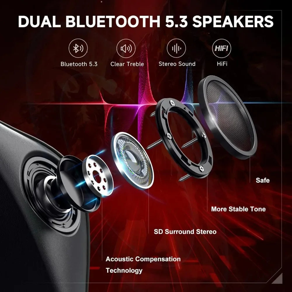 - 【Upgraded Bluetooth 5.3 Speakers】Gaming chair features dual built-in Bluetooth 5.3 speakers on both sides of the backrest.Easily connect your computer,smartphone,tablet or any Bluetooth-enabled device without the hassle of cables.Enjoy faster transmission,more stable connections and enhanced sound quality.Whether you're gaming, watching movies or listening to music,you'll experience a deeper level of immersion that traditional chairs can't offer.