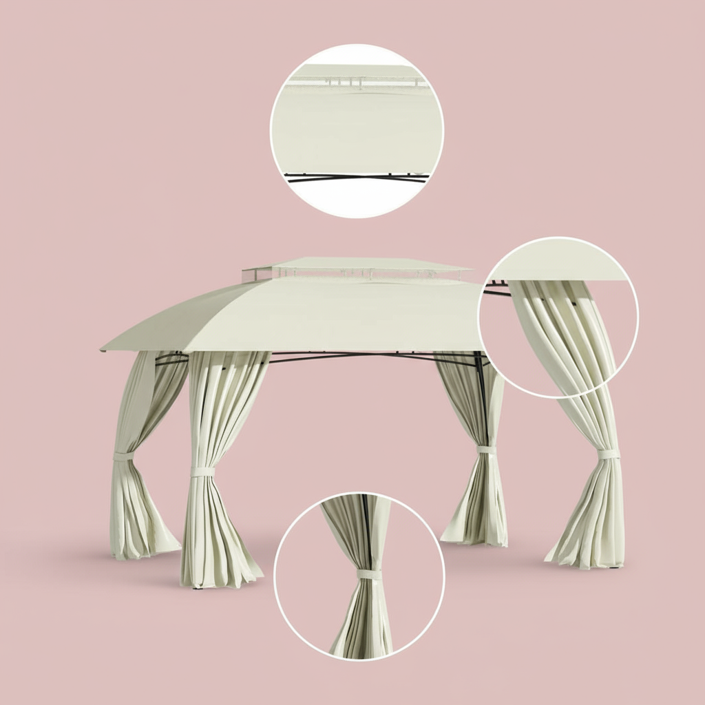 Transform your outdoor living space into a comfortable retreat with the 10' x 13' Patio Gazebo Canopy Double Vented Roof Steel Frame, a sophisticated outdoor shelter that combines exceptional functionality with elegant design to create the perfect sun shade solution for any outdoor environment. This premium patio gazebo features a robust steel frame construction paired with innovative double vented roof technology that provides superior airflow and weather protection while maintaining an attractive beige finish that enhances any outdoor setting. The 10' x 13' Patio Gazebo Canopy includes curtain sidewalls that offer versatile privacy and protection options, adapting to your specific needs and weather conditions throughout different seasons. Whether installed in your garden, on your lawn, in your backyard, or on your deck, this outdoor sun shade shelter creates a defined space that extends your home's functionality while providing comprehensive protection from harsh sunlight and outdoor elements.