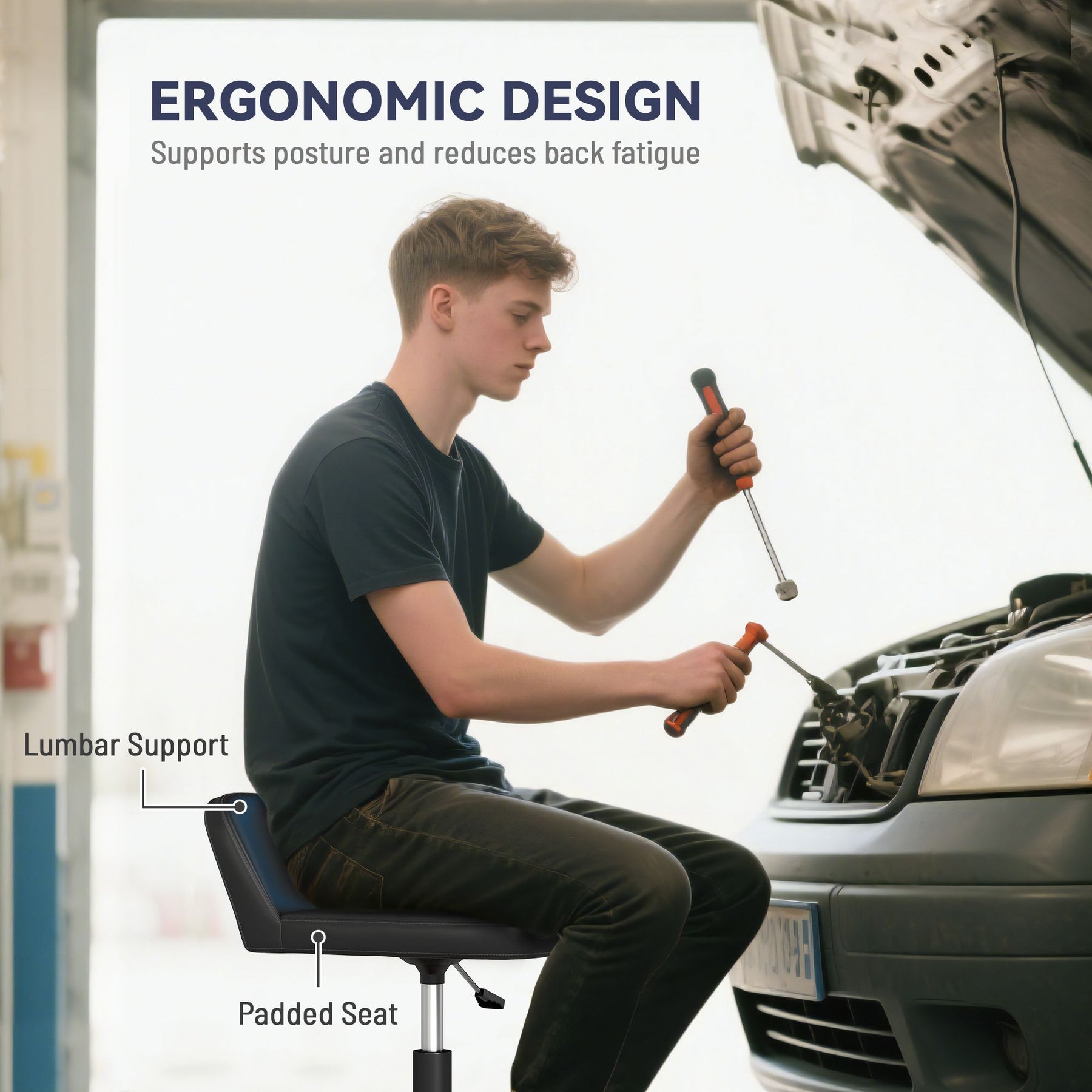 - Easy-to-Clean Padded Seat: Work in lasting comfort with the cushioned seat and built-in lumbar support that reduces back strain. The plastic cover resists stains and wipes clean in seconds, keeping your stool looking fresh with minimal effort