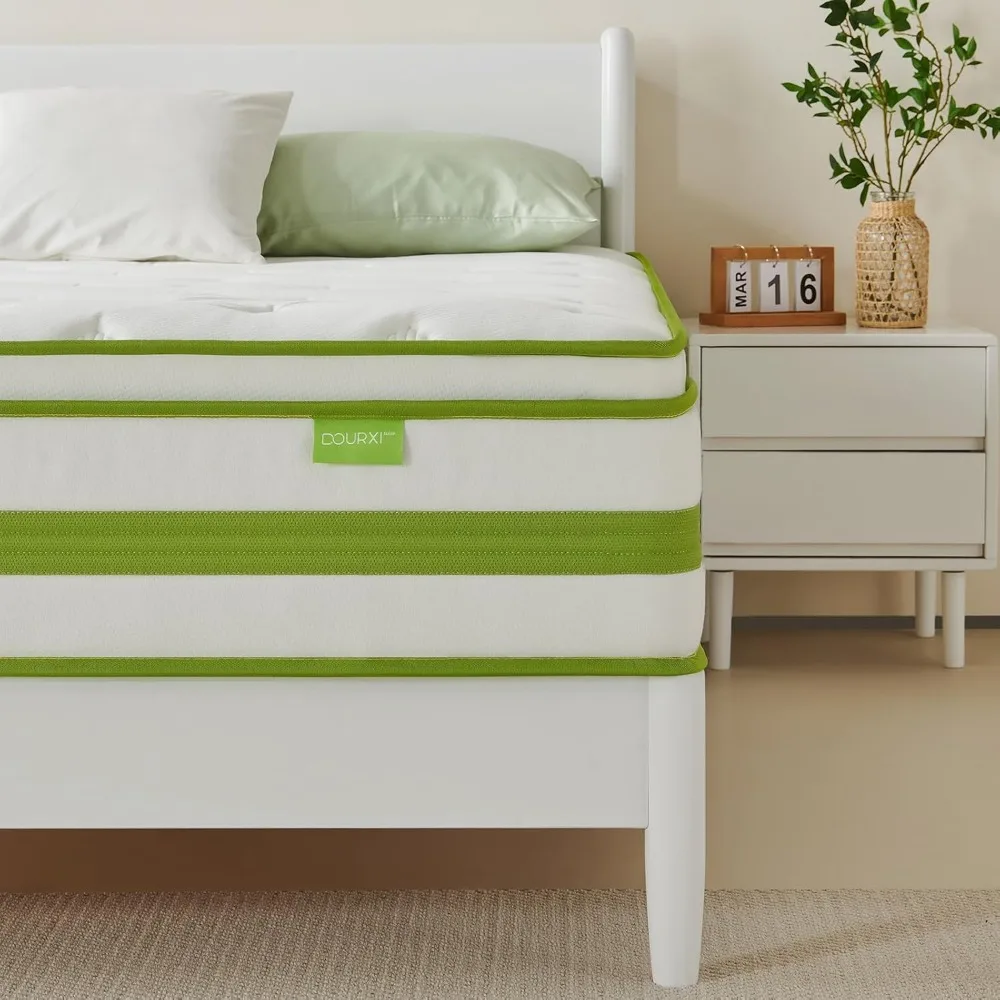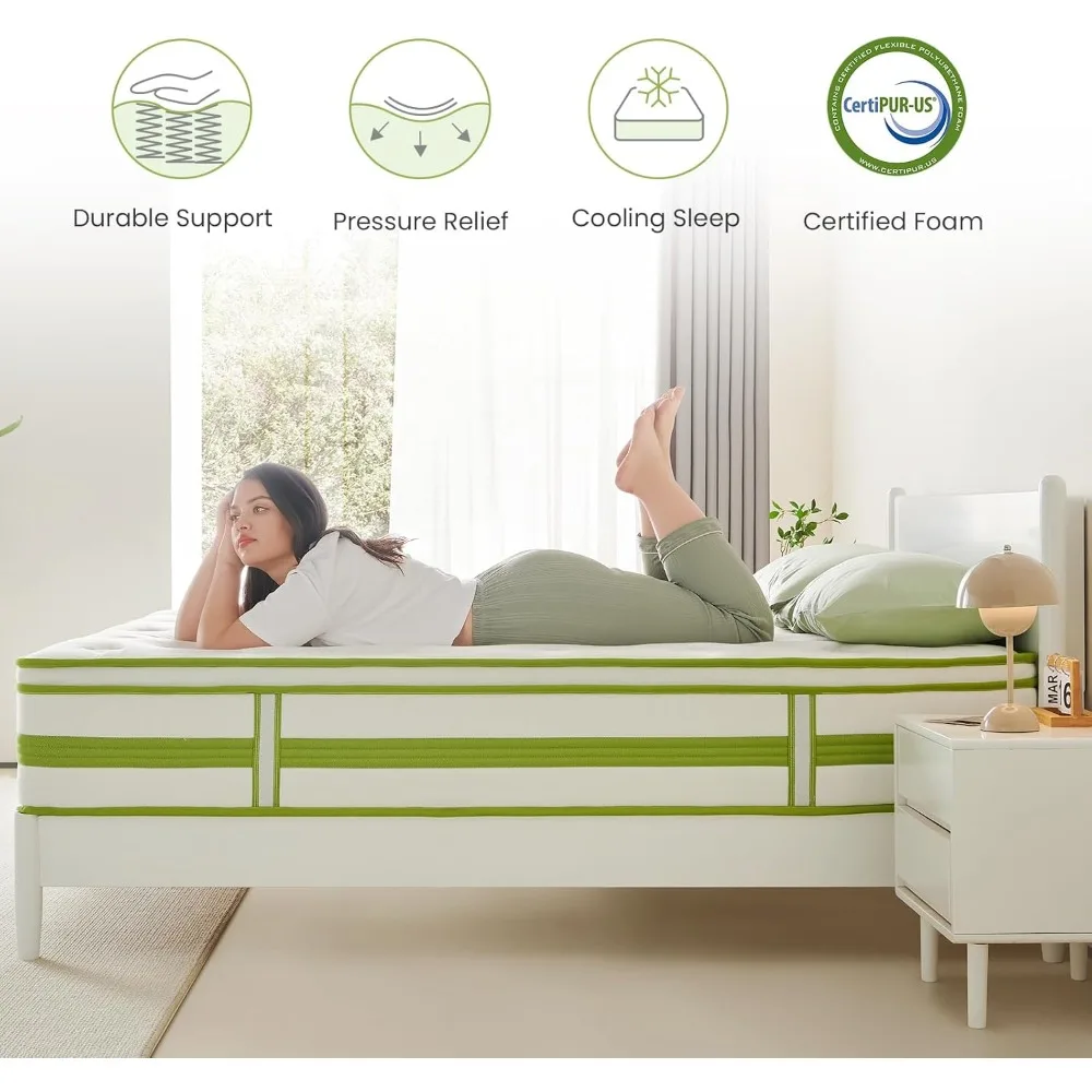 12 Inch Mattress King, Organic Cotton Fabric Cover, Gel Memory Foam and Individual Innersprings, Cooler Sleep with Pressure Reli
