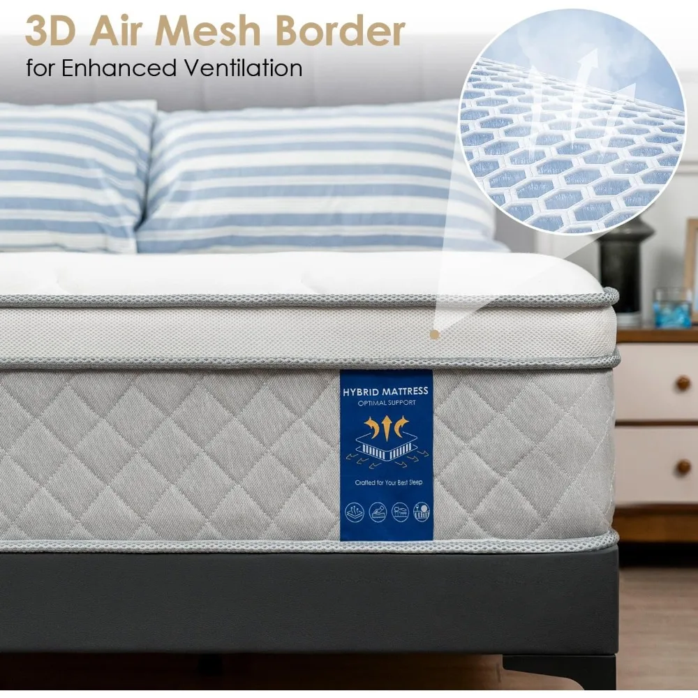 Queen Size Mattress,12 Inch Hybrid Mattress in a Box with Gel Memory Foam,Independent Pocket Springs,Lumbar Support & Pressure