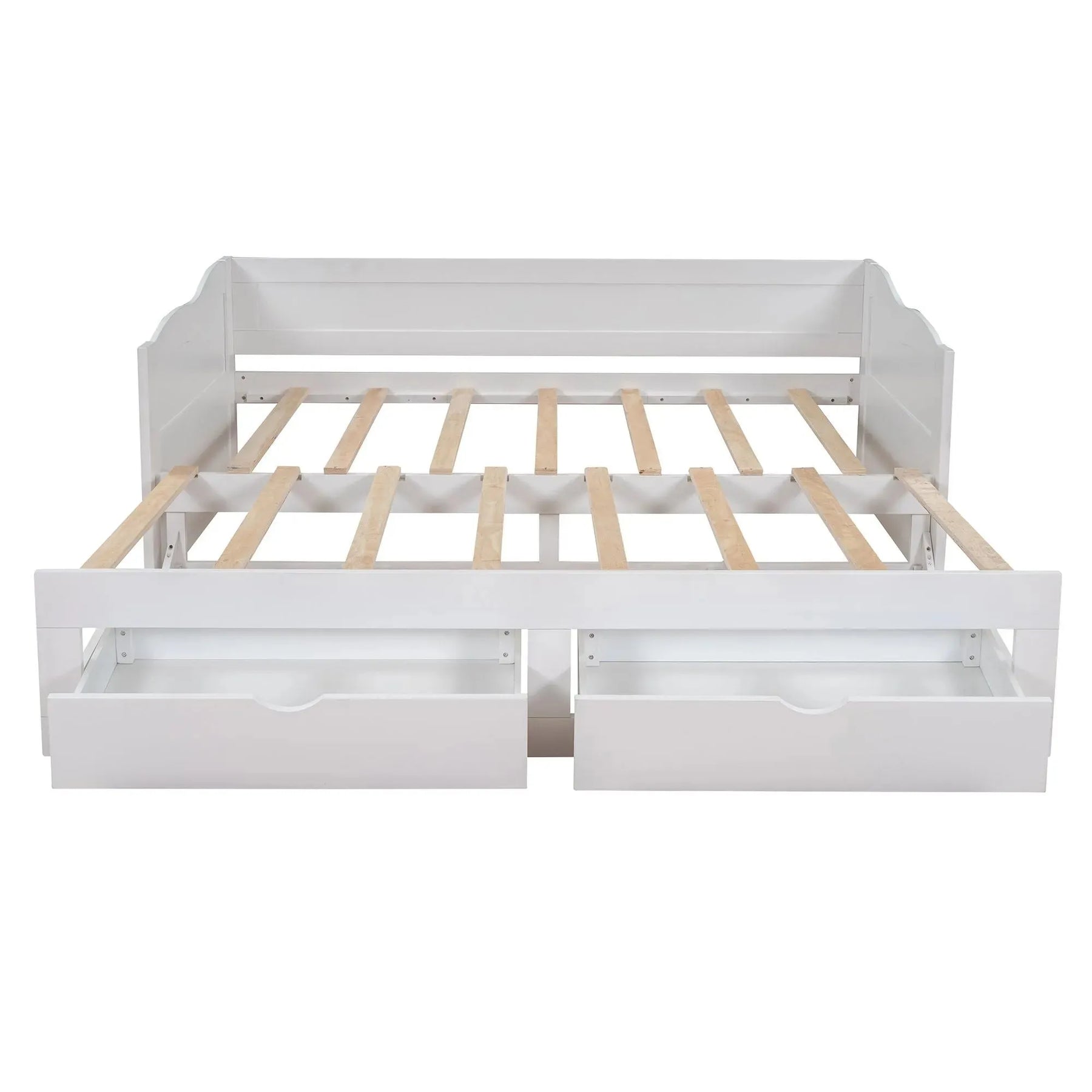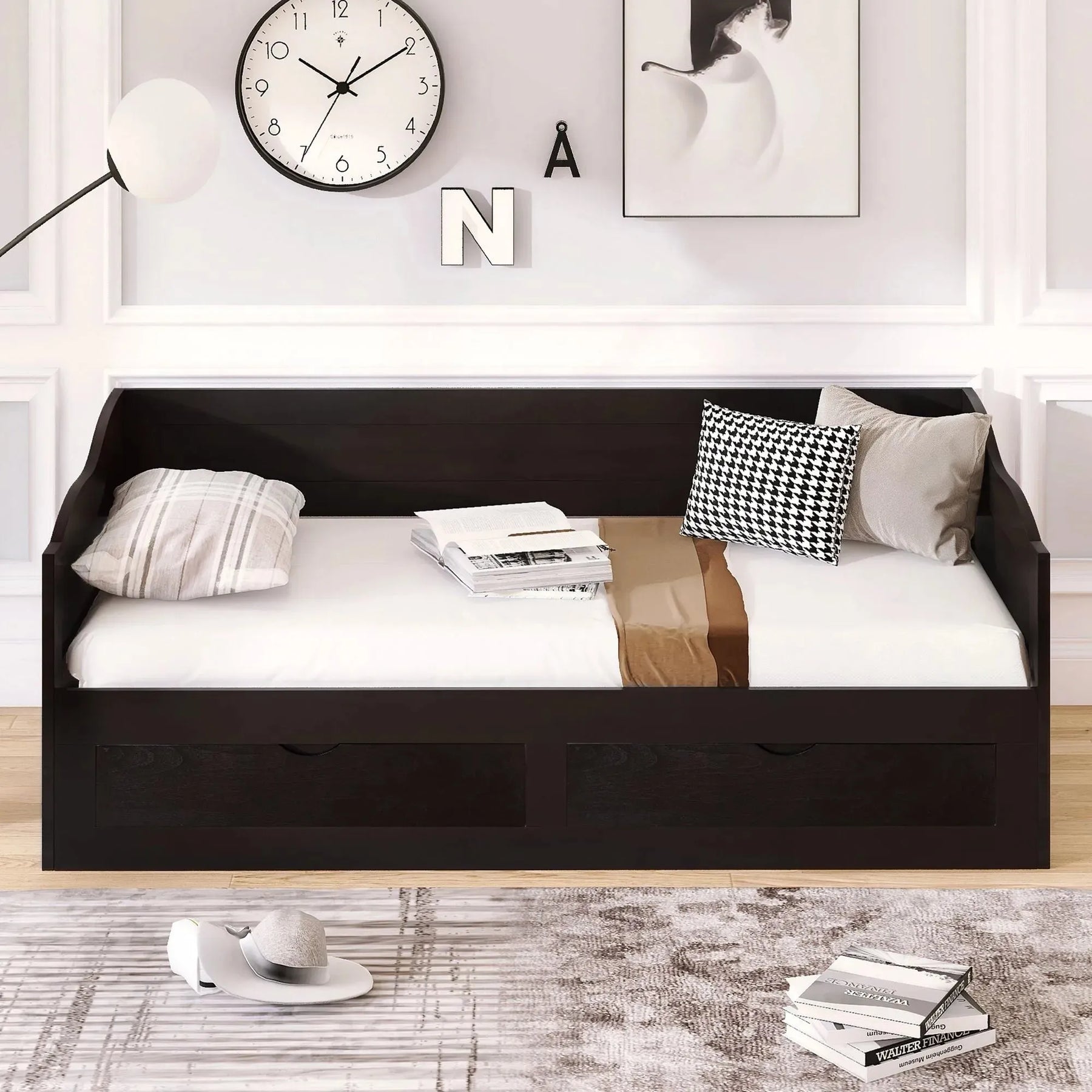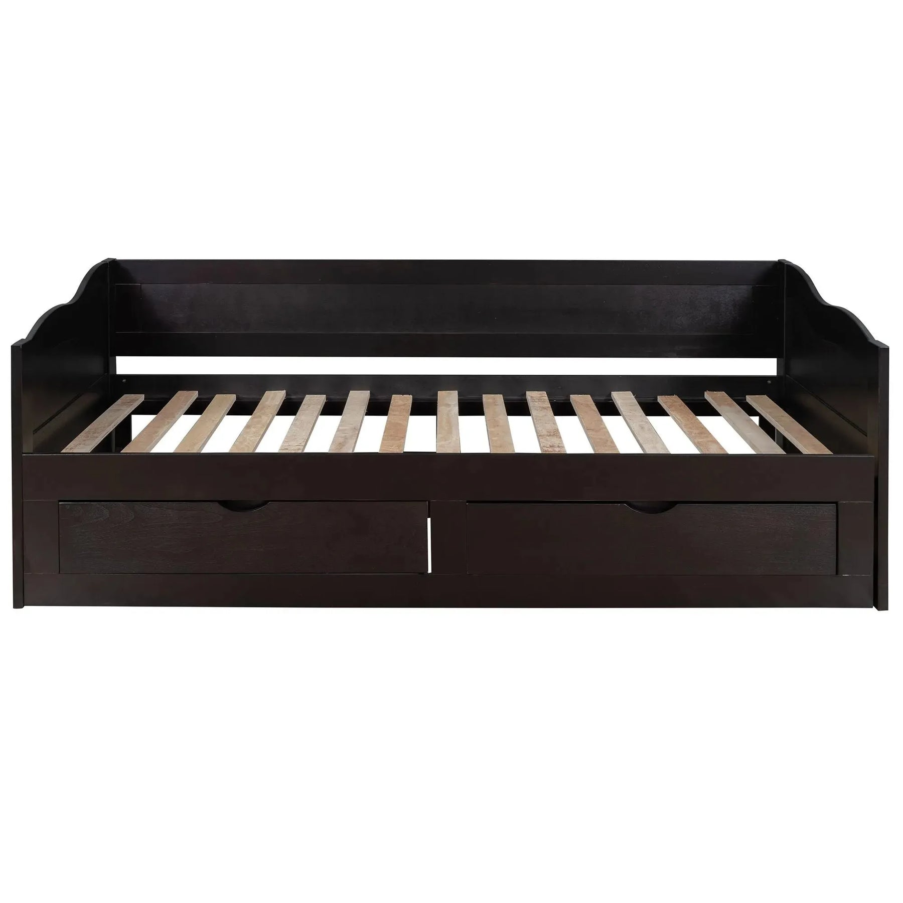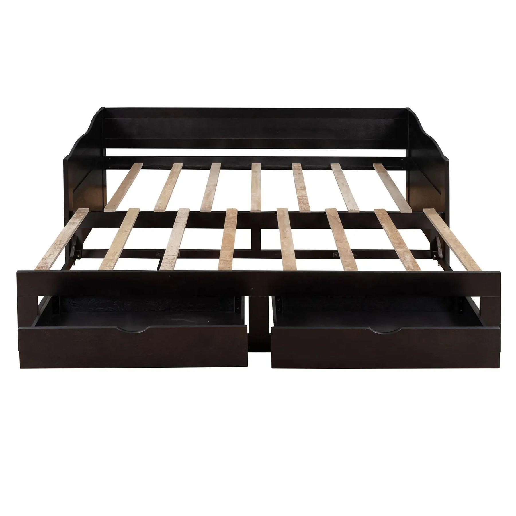 Wooden Daybed with Trundle Bed and Two Storage Drawers , Extendable Bed Daybed,Sofa Bed with Two Drawers