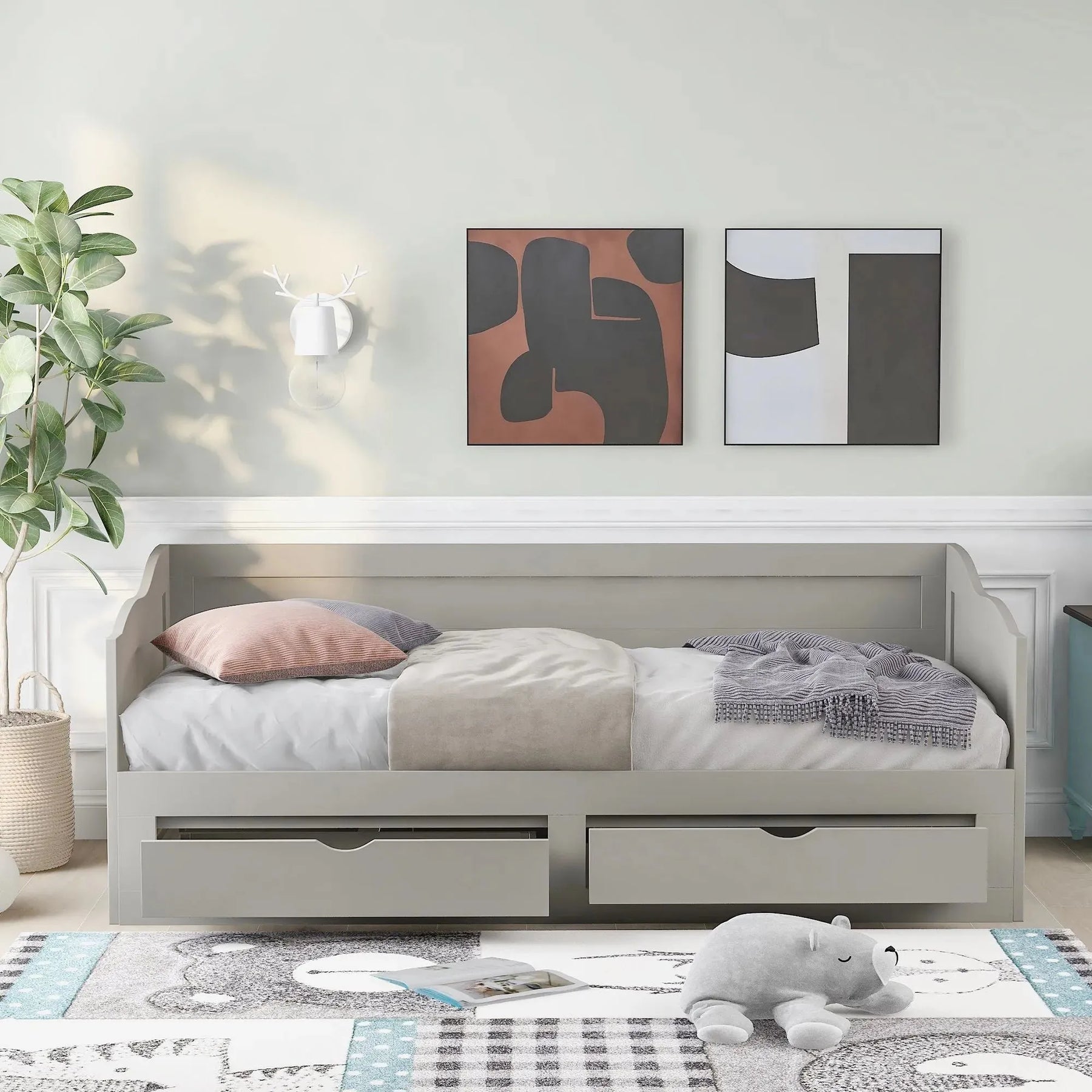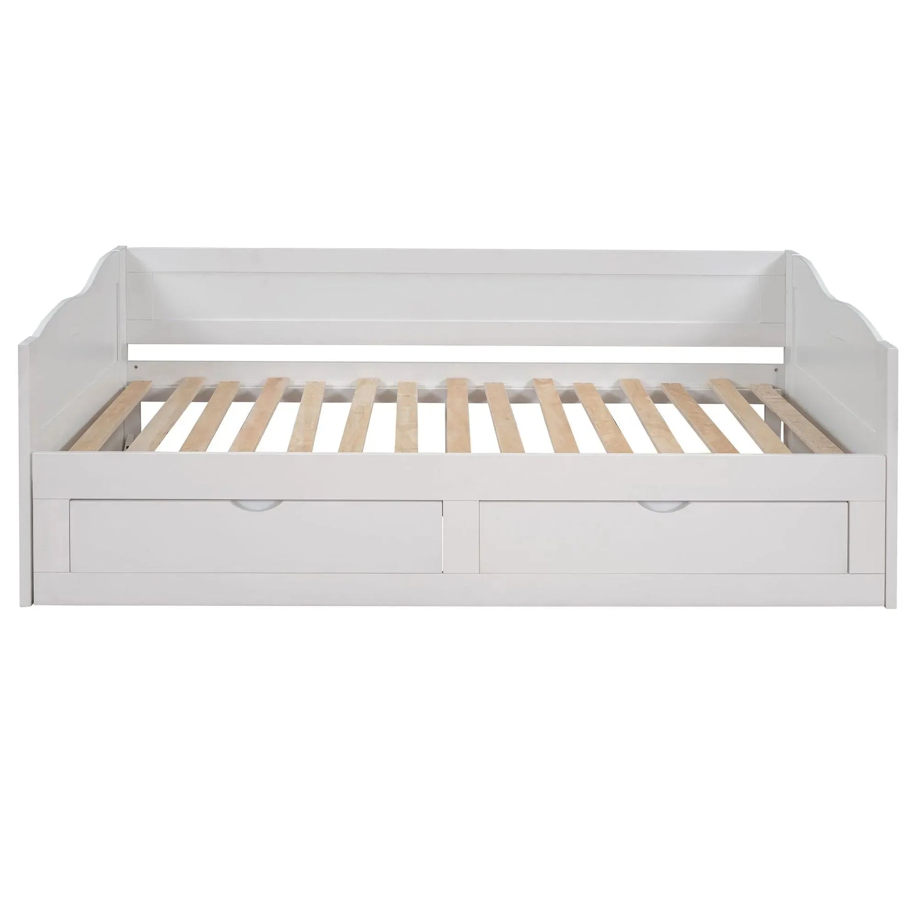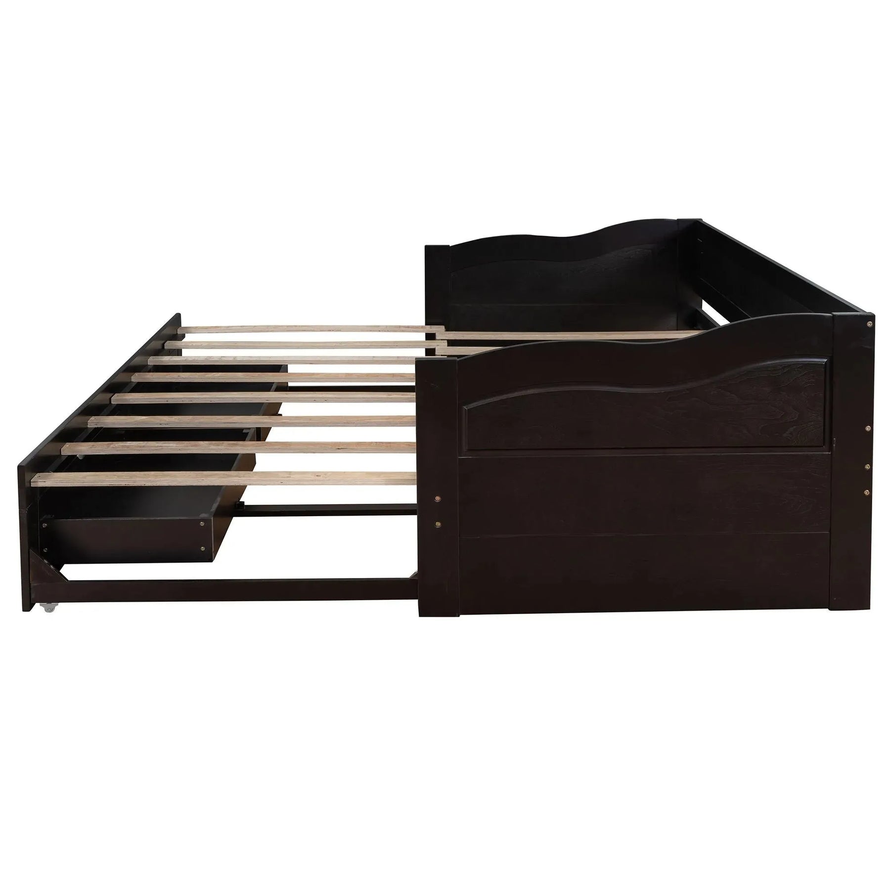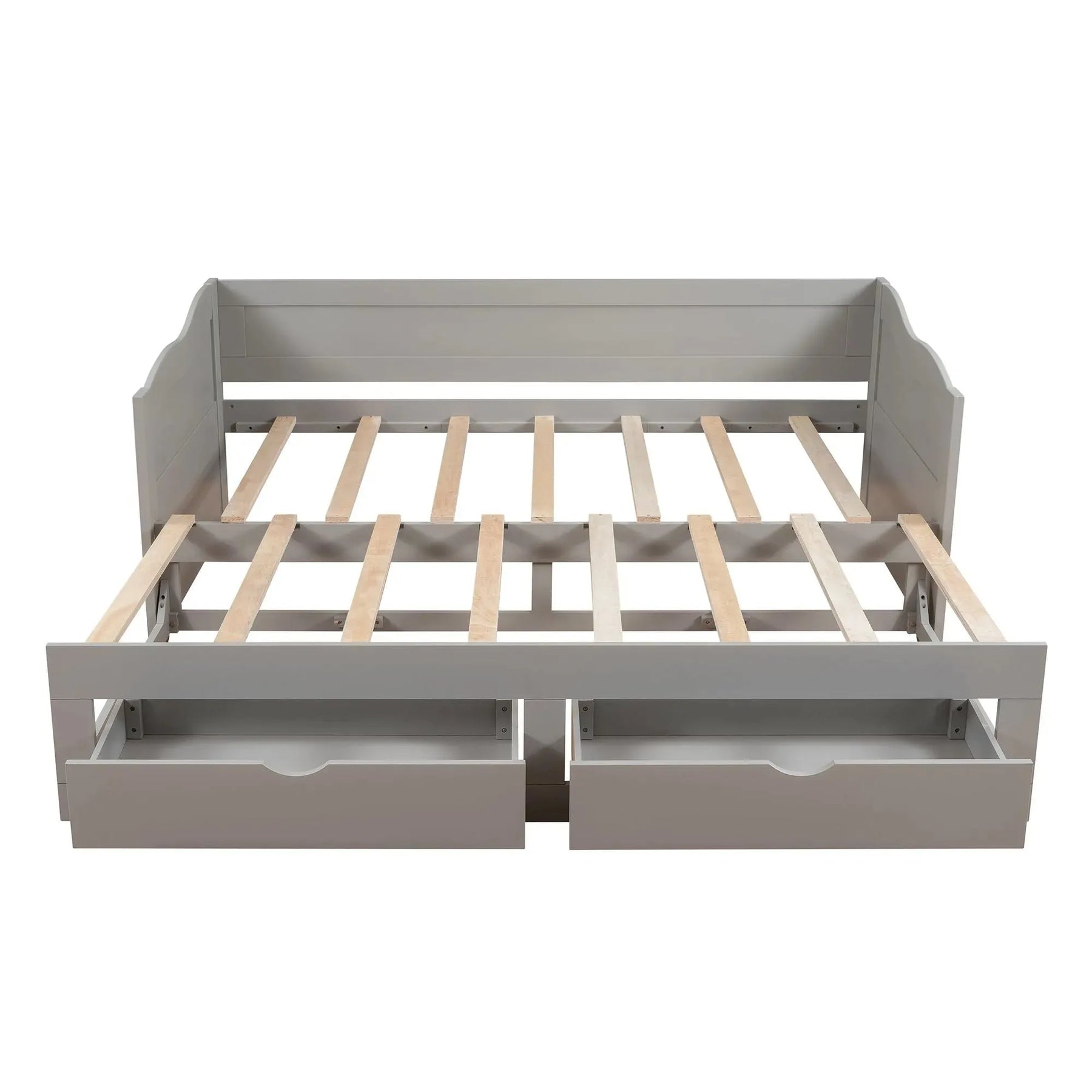 Wooden Daybed with Trundle Bed and Two Storage Drawers , Extendable Bed Daybed,Sofa Bed with Two Drawers