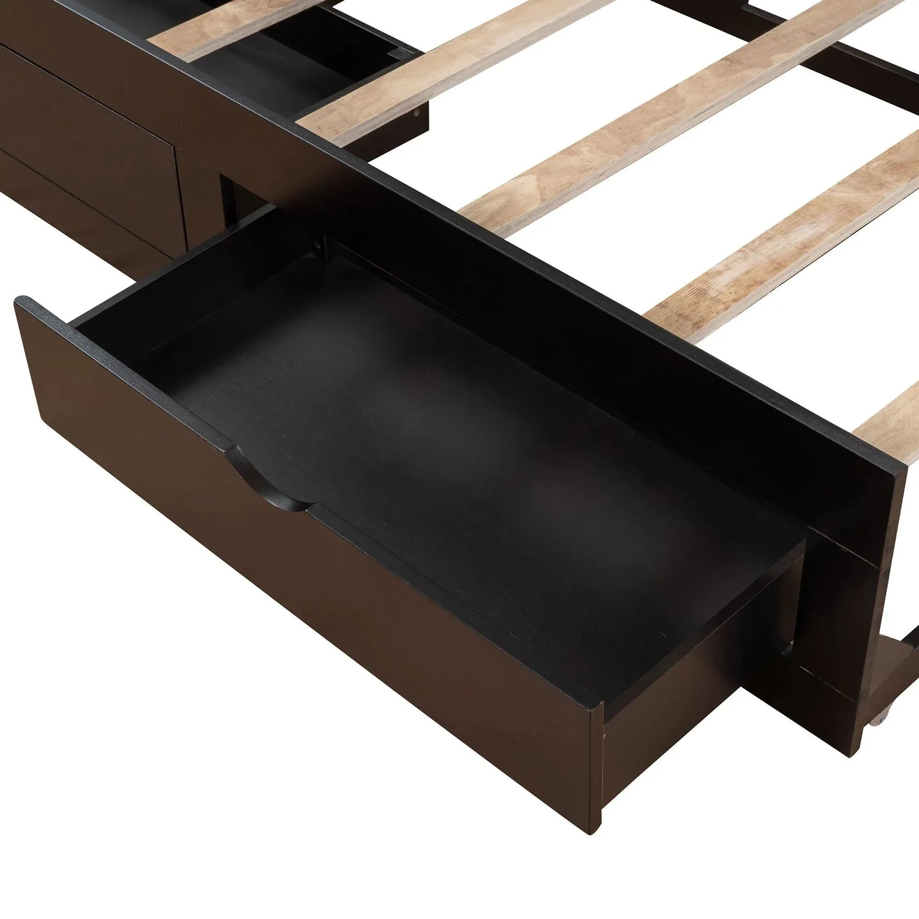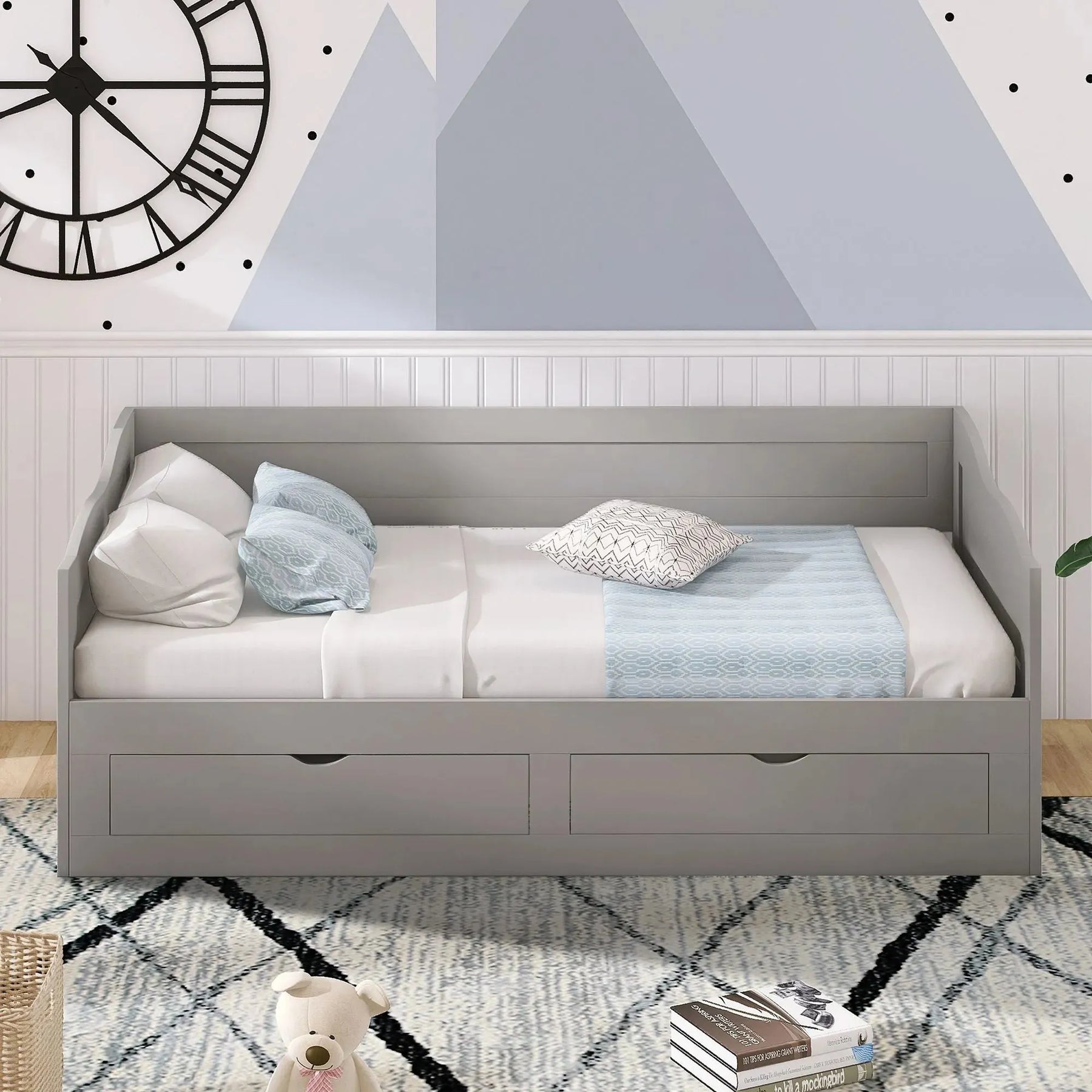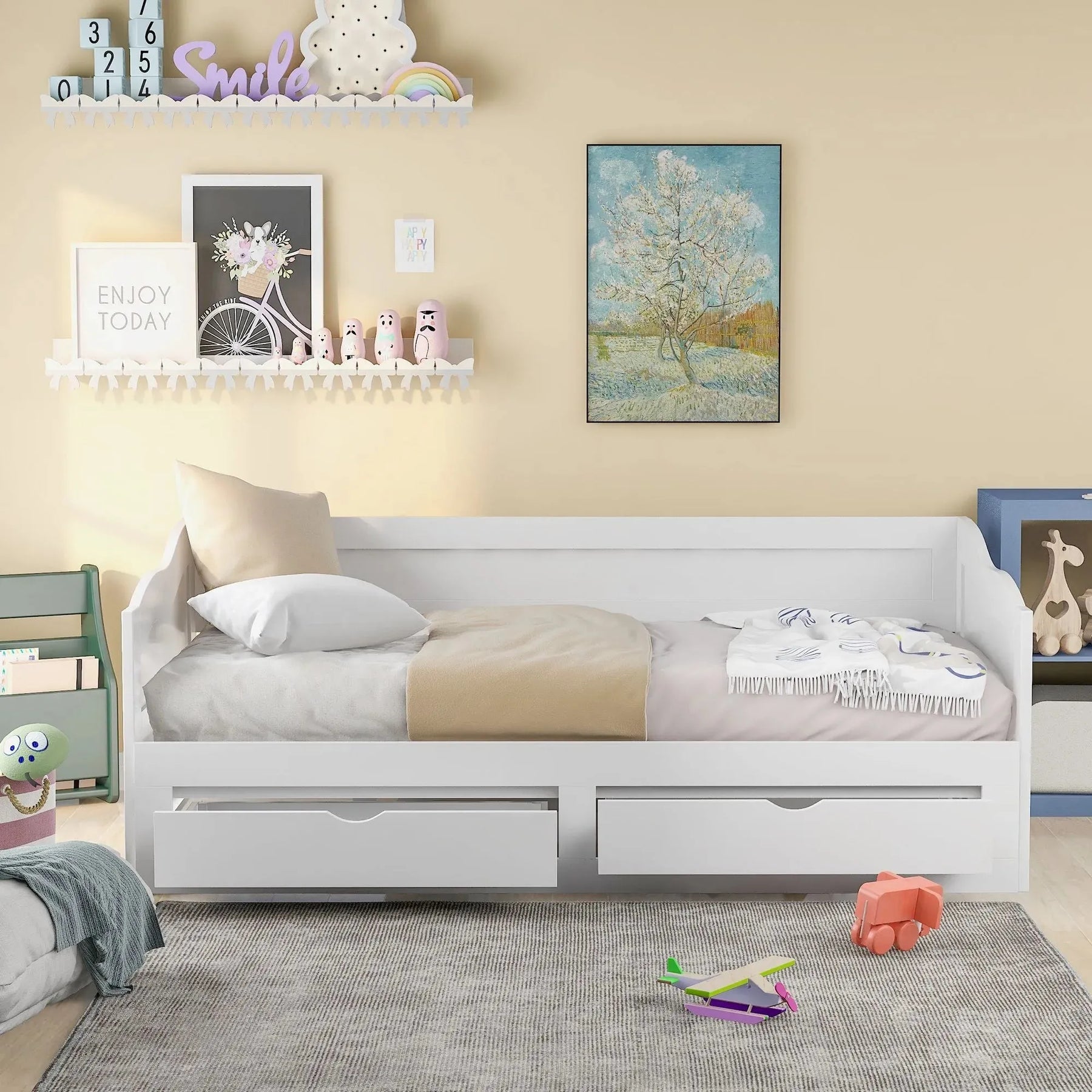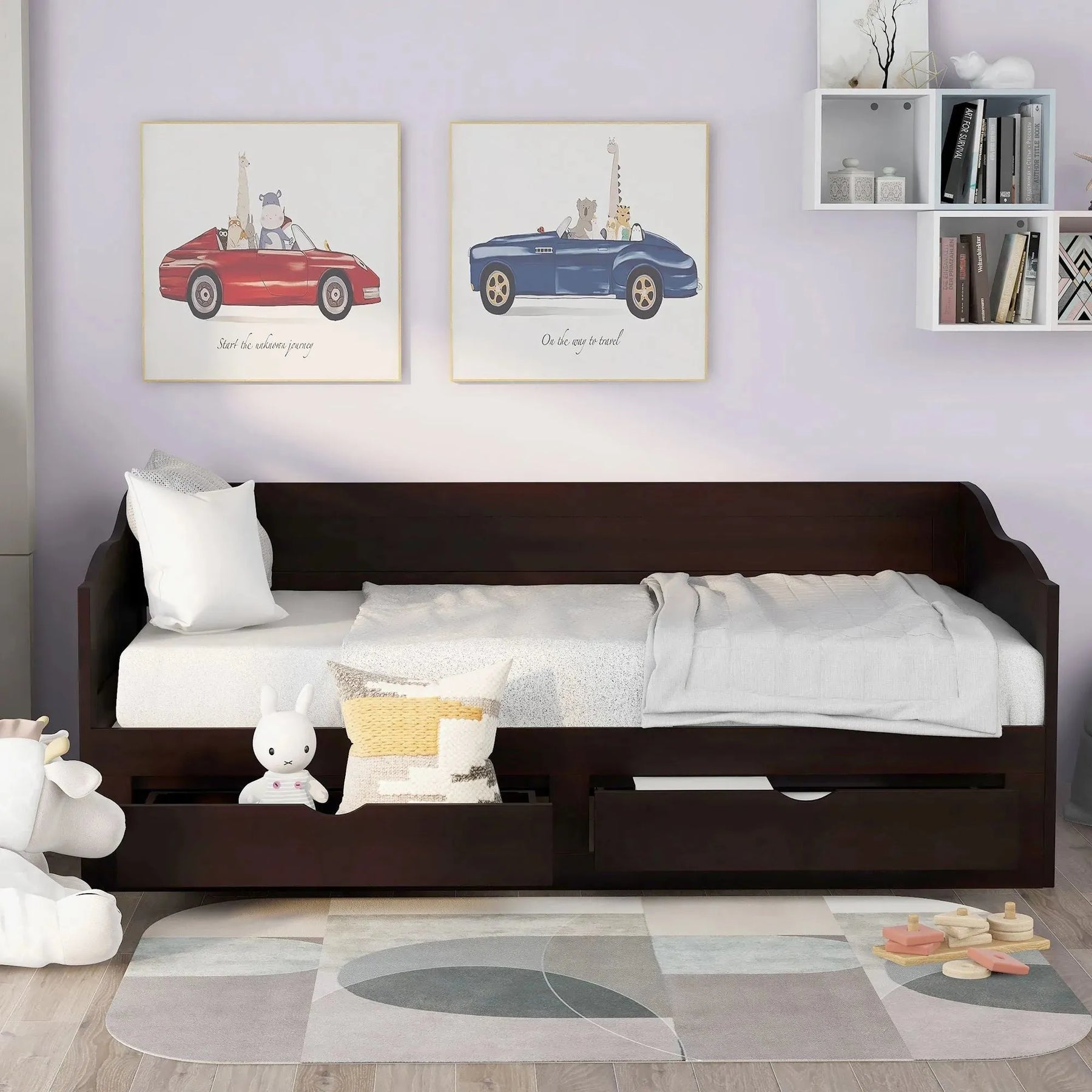Wooden Daybed with Trundle Bed and Two Storage Drawers , Extendable Bed Daybed,Sofa Bed with Two Drawers