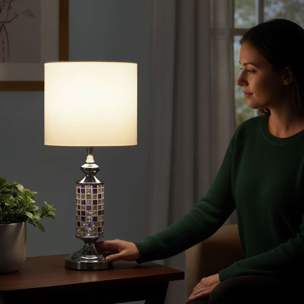 24" Vicki Chrome Bohemian Glass Mosaic Modern Table Lamp