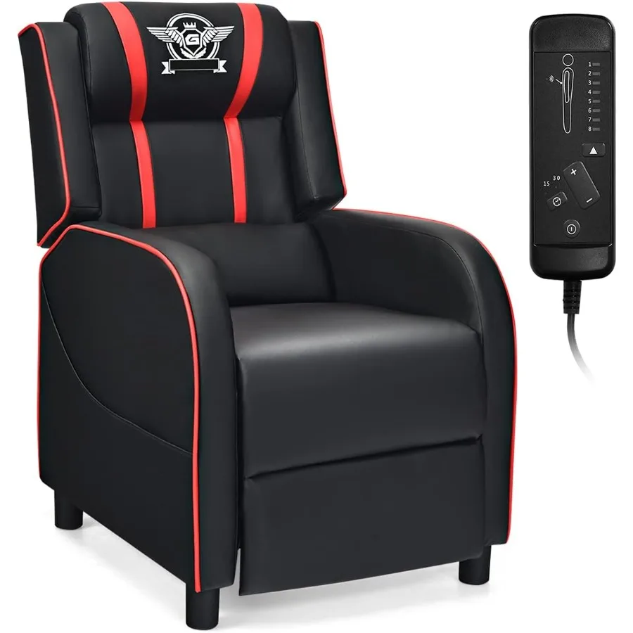 1. Giantex Gaming Recliner Chair with Massage, Adjustable Footrest & Remote Control, Red