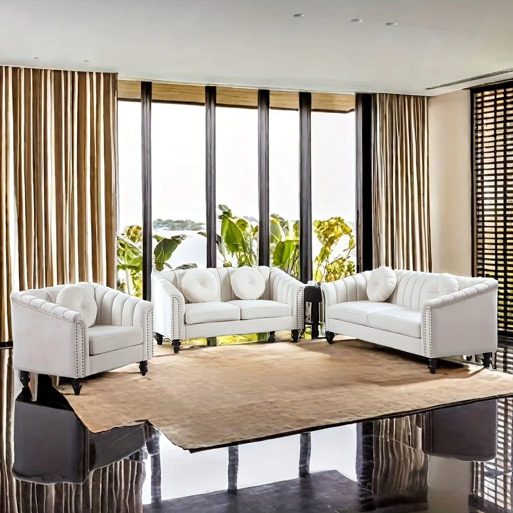 3pcs Chesterfield Sofa Couches Set with 5 Pillows Modern Sofas for Living Room, Bedroom, Office Comfortable Couch Leisure Sofa