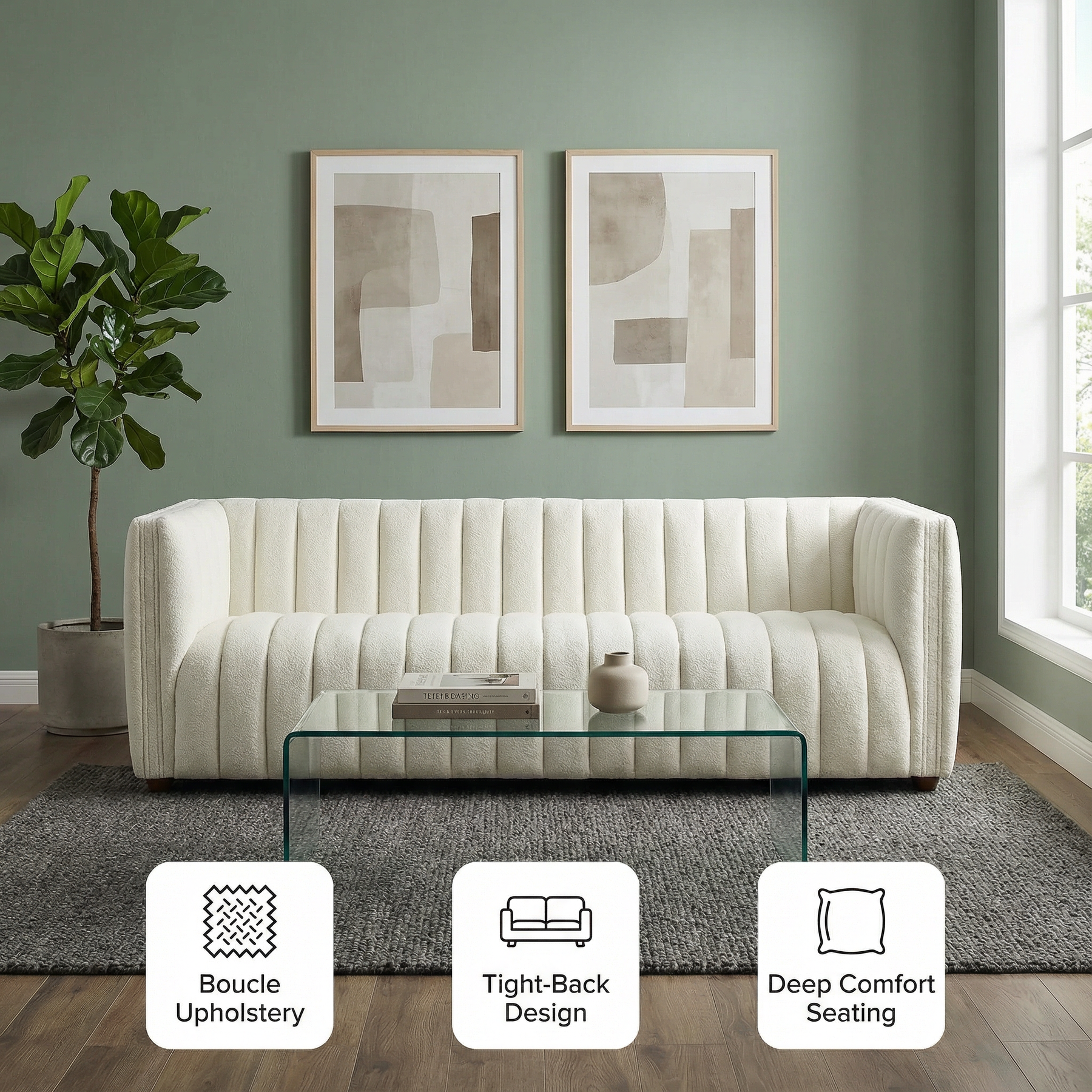 April Mid Century Modern Luxury Tight Back Beige Boucle Couch