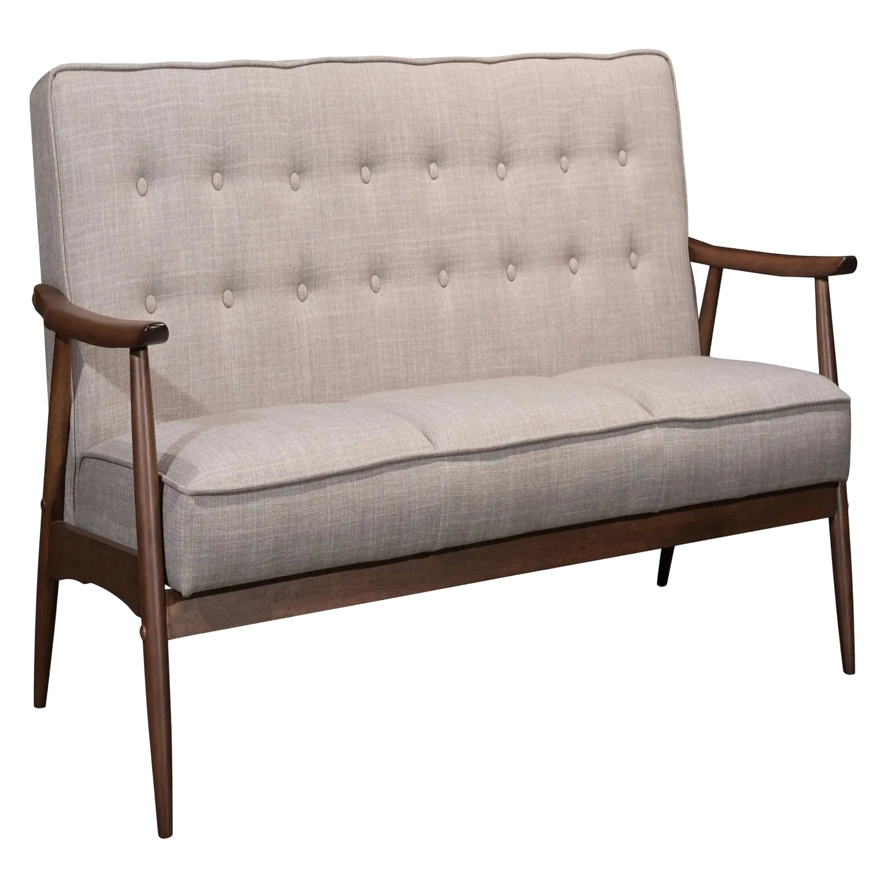 Buy Rocky Sofa Putty – Sleek Mid-Century Modern Comfort for your living room. Trusted quality from Trufairs. Fast delivery. The Rocky Sofa Putty is a strong example of mid-century modern design—clean lines, button-tufted cushions, and gently sloped arms provide both visual appeal and comfort. This three-seat sofa works well for daily use, whether it’s hosting family gatherings or offering a spot for a quiet evening at home. Its compact silhouette and durable putty-colored upholstery allow it to blend seamlessly with a range of interior styles, from minimalist to eclectic. The angular walnut legs and sturdy frame create a solid foundation, so it’s suitable for both apartments and larger spaces. Subtle self-welt detailing adds a refined touch, enhancing the overall upscale look.Whether you place it as the focal point of your living area or combine it with other pieces, the Rocky Sofa Putty delivers ergonomic comfort and a cohesive design. It’s a smart choice for those who value both style and functionality in their living environment. The well-proportioned dimensions make it easy to integrate into most rooms, helping create an inviting and unified atmosphere.
