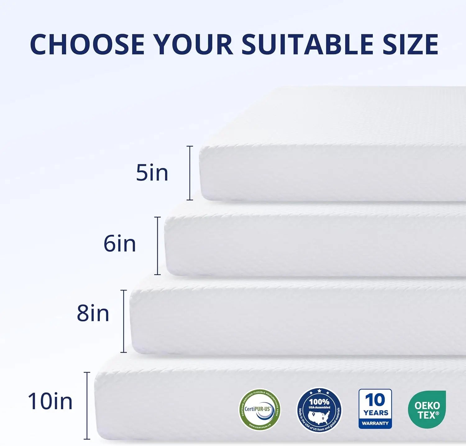 5. 10-Year Warranty - We're so confident that you'll love our mattress that we're backing it with a generous 10-year warranty. If your mattress arrives damaged or defective, our dedicated U.S.-based customer service team is here to help. Experience the peace of mind that comes with knowing your investment is protected.