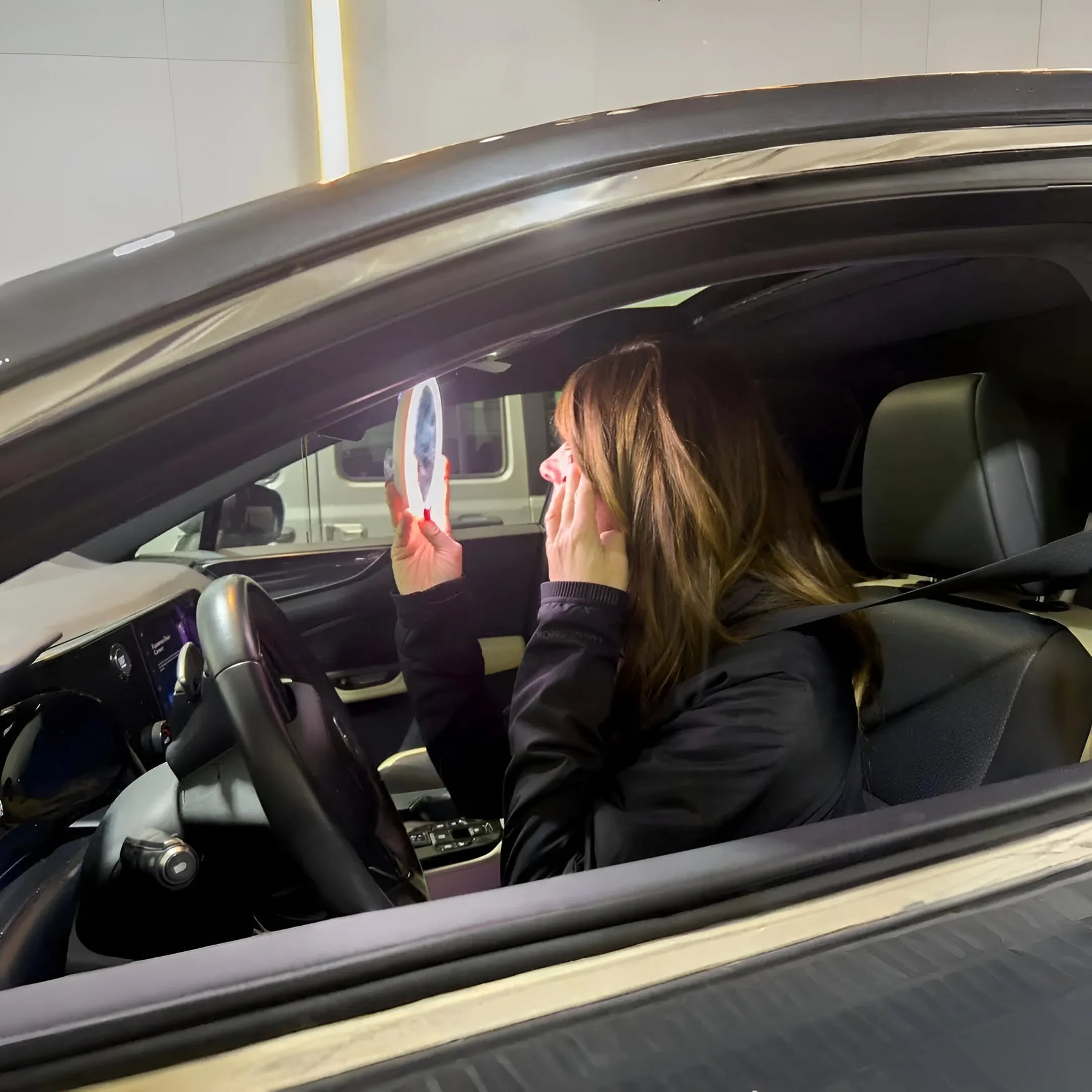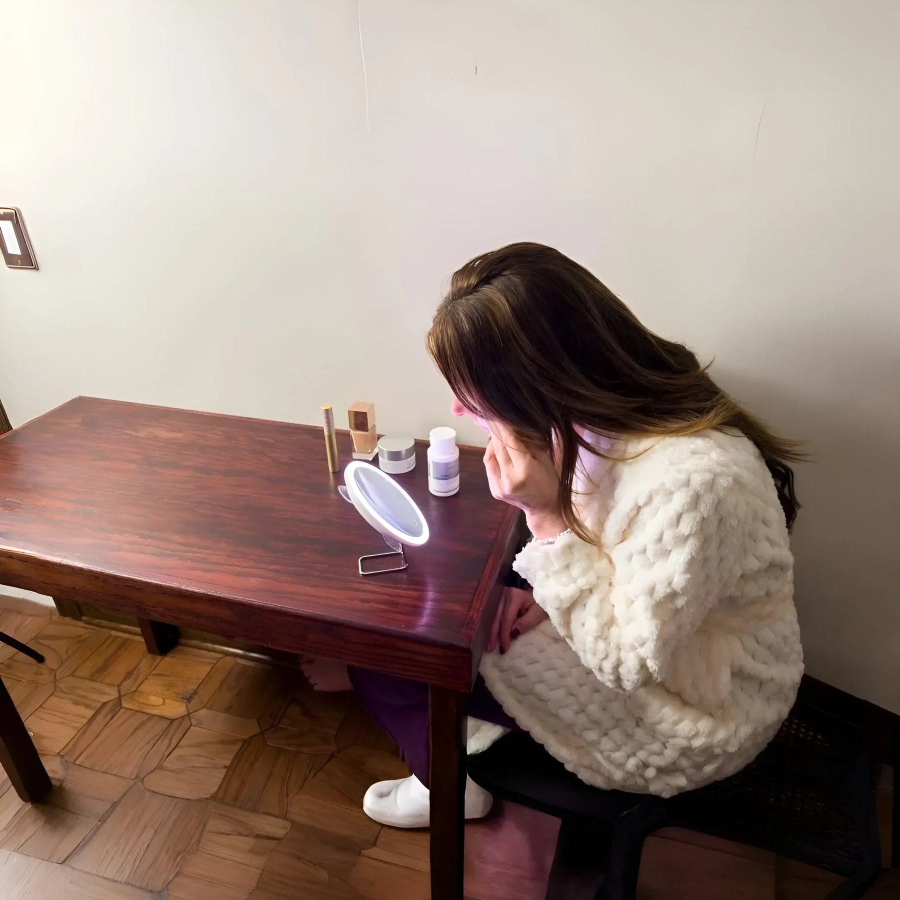 A built-in 1000mAh rechargeable battery keeps the mirror running for 8–10 hours on a full charge, ideal for long travel days or everyday home use.