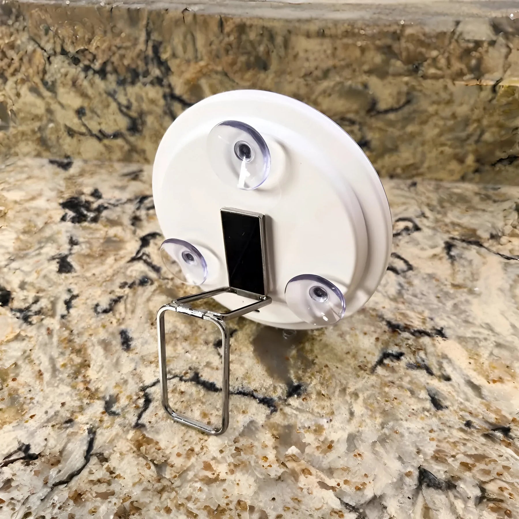 Enjoy hands-free convenience with a fully rotating stand that locks at any angle . Use it on countertops or attach it to mirrors, tiles, and glass surfaces with the included suction cups for ultimate versatility.