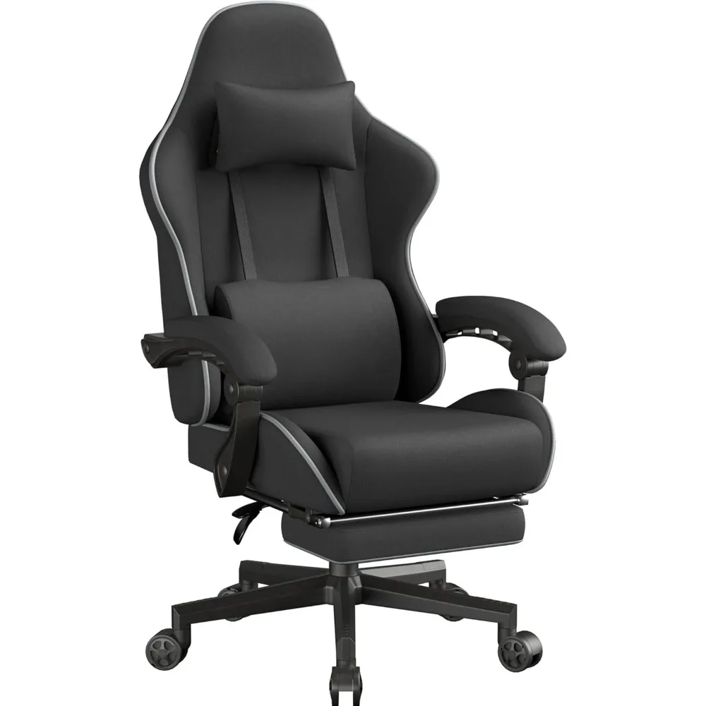 Gaming Chair Fabric Big and Tall with Pocket Spring Cushion, Massage Game Chair Cloth with Headrest, Ergonomic Computer Chair