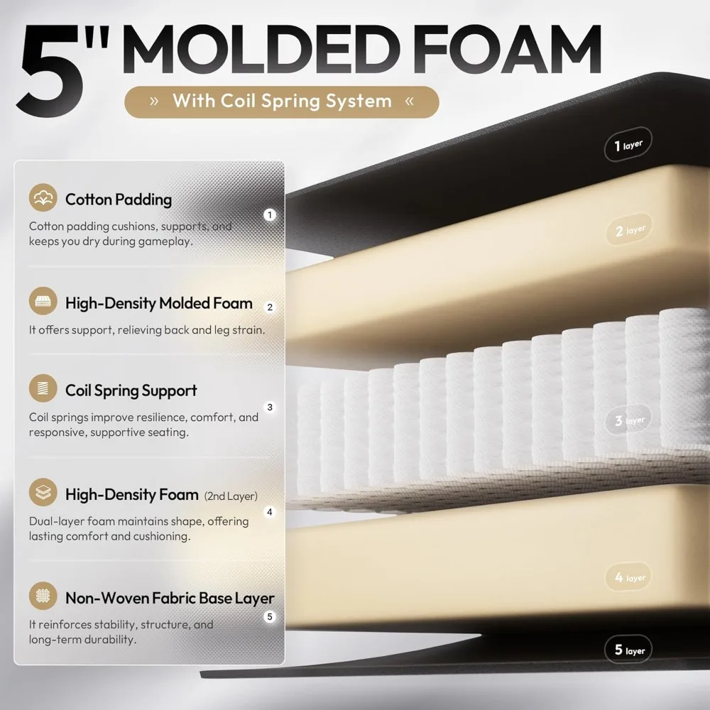 • Sitting Comfort Like Sofa: This seat cushion of gaming chair is composed of pocket springs and shaped foam, allowing for the same elasticity and comfort as a sofa. The springs better distribute the pressure on the seat cushion for better ride comfort and more ergonomic.