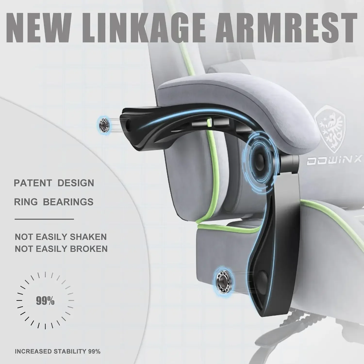 Gaming Chair Fabric with Pocket Spring Cushion, Massage Game Chair Cloth with Headrest, Ergonomic Computer Chair with Footrest 290LBS, Light Grey