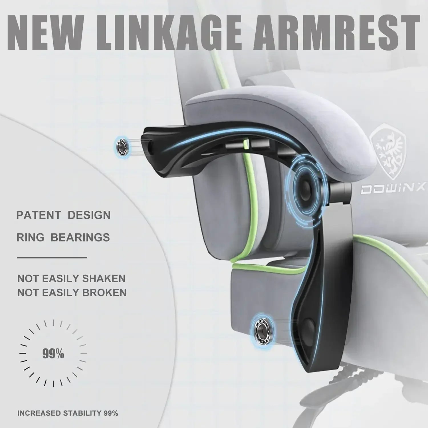 Hot-Gaming Chair Fabric with Pocket Spring Cushion, Massage Game Chair Cloth with Headrest, Ergonomic Computer Chair, Light Grey