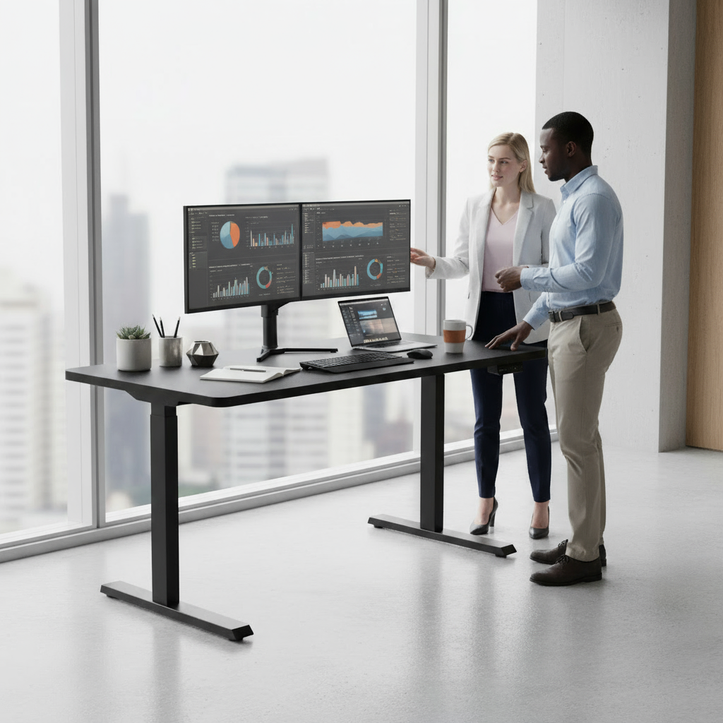 - Dual motor electric height adjustment (27.2"–46.7") delivers smooth, quiet transitions for any workspace