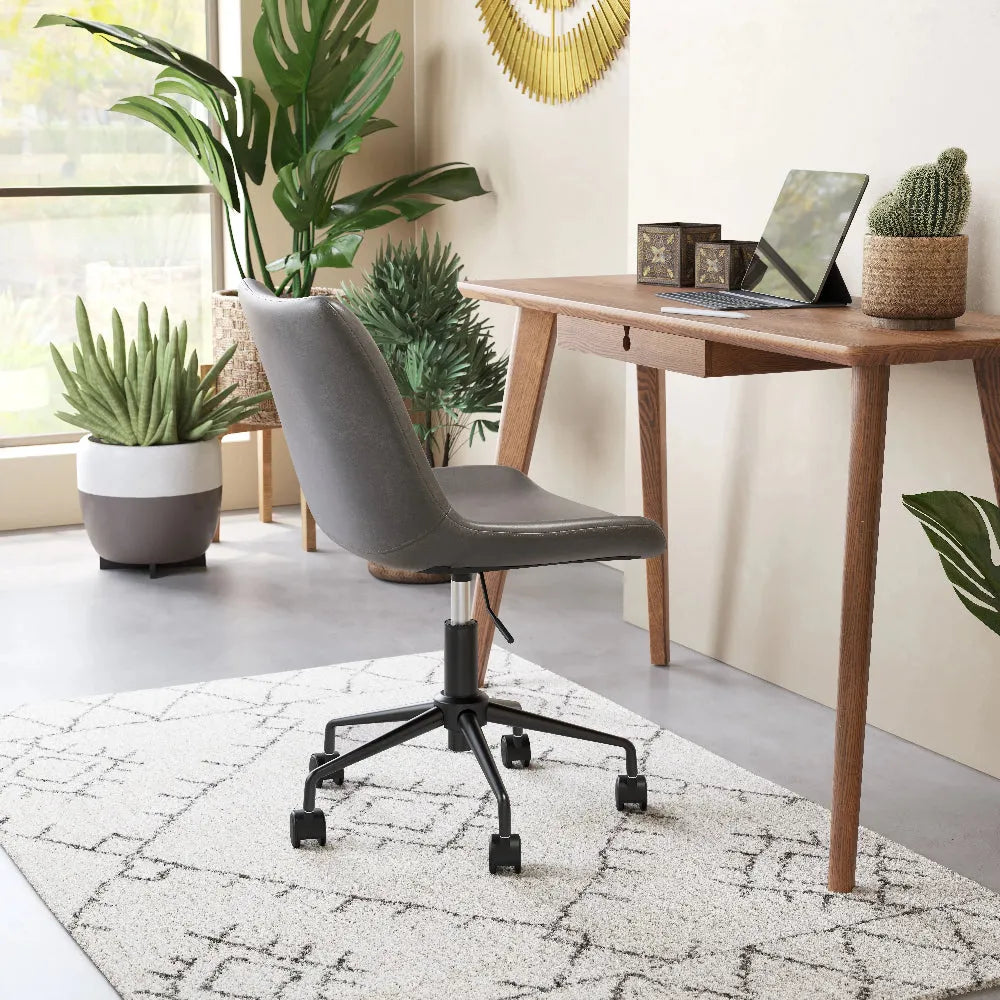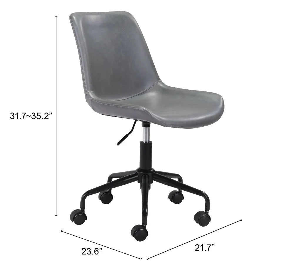 Between the sleek gray exterior and premium craftsmanship, the Byron Office Chair Gray is the perfect combination of sophistication and durability. Crafted from premium 100% polyurethane, plywood, and steel, this chair is a perfect combination of strength and style, making it ideal for any modern office or home workspace. This is topped in smooth upholstery of polyurethane for a more polished aesthetic while also guaranteeing durability and comfort for those long work days. Its ergonomic construction encourages proper body alignment, and the durable steel frame ensures strength and longevity. This chair can be used in a home office or a corporate setting, and is visually congruous with a multitude of decor styles—bringing an element of sophistication and professionalism to whatever space it inhabits.