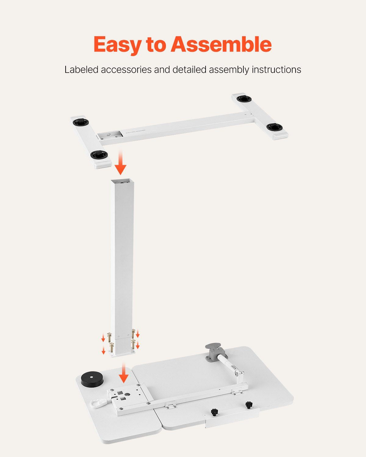 · Adjustable Height: With a smooth hydraulic system, this overbed table adjusts from 25.4 in / 64.5 cm to 40.35 in / 102.5 cm - ideal for sitting and standing. Plus, the tabletop tilts 0-60°, making it ideal for reading, working, or drawing.