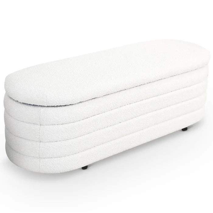 This bench is not only stylish but super functional! The boucle fabric is soft and cozy, and the hidden storage inside is perfect for blankets and pillows.