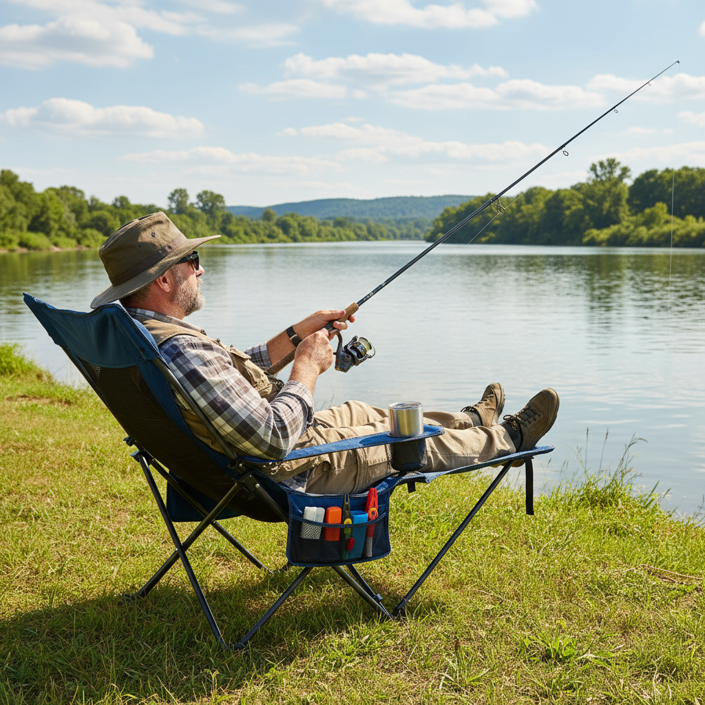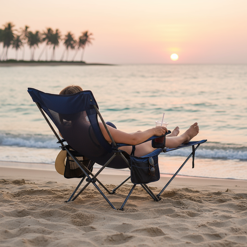 Hands-free Chair: Come with a mesh cup holder, everything is within arm’s reach. Rest on the camping chair, drink a cup of coffee, and enjoy sunbathing. Also comes with a side pocket, convenient to put your essentials.