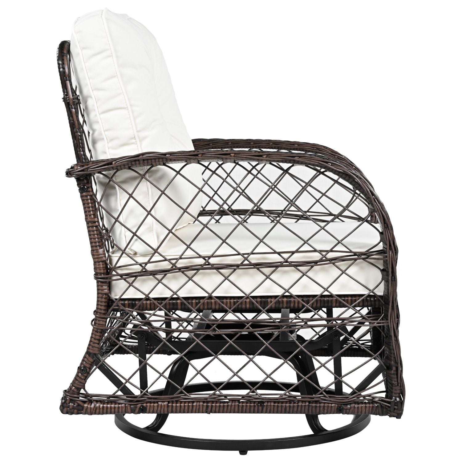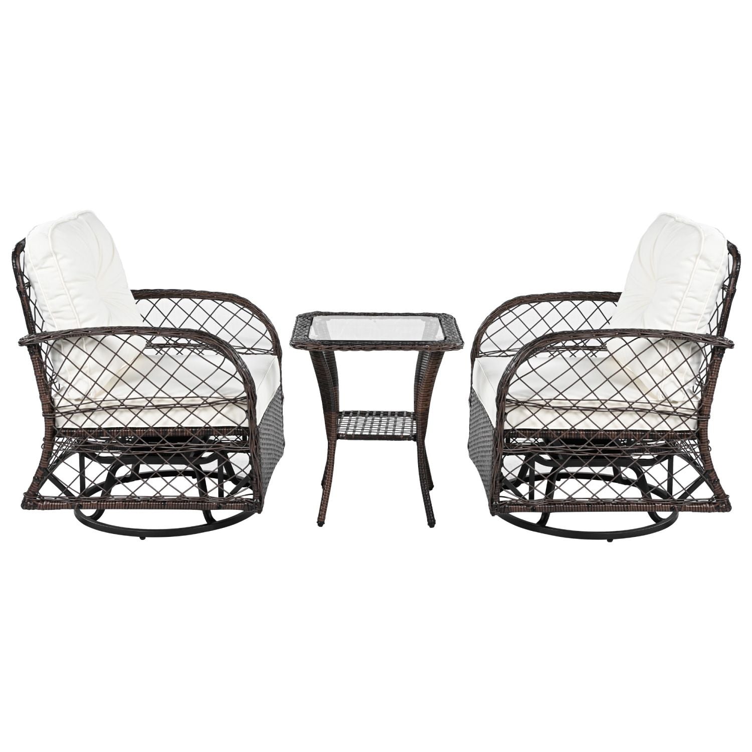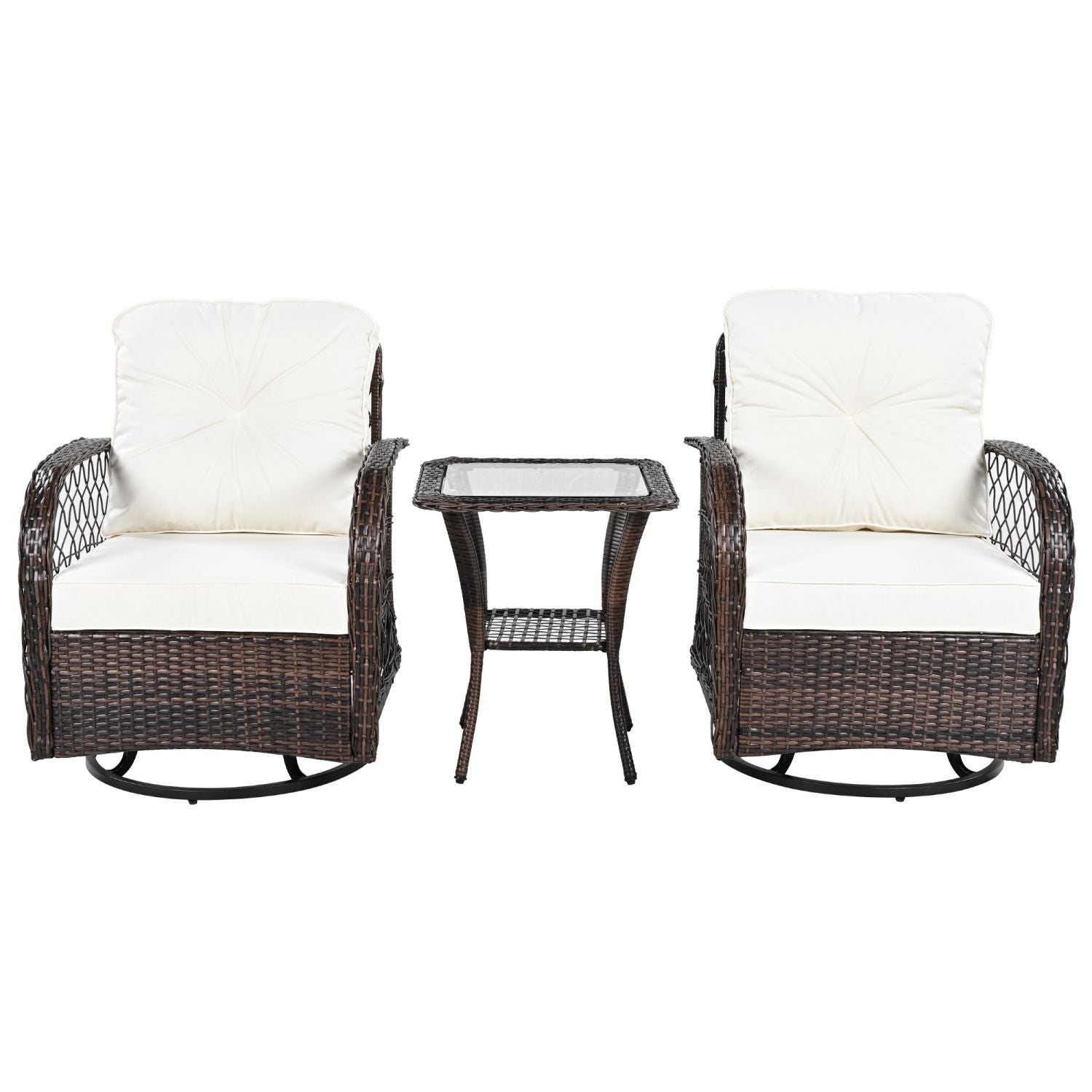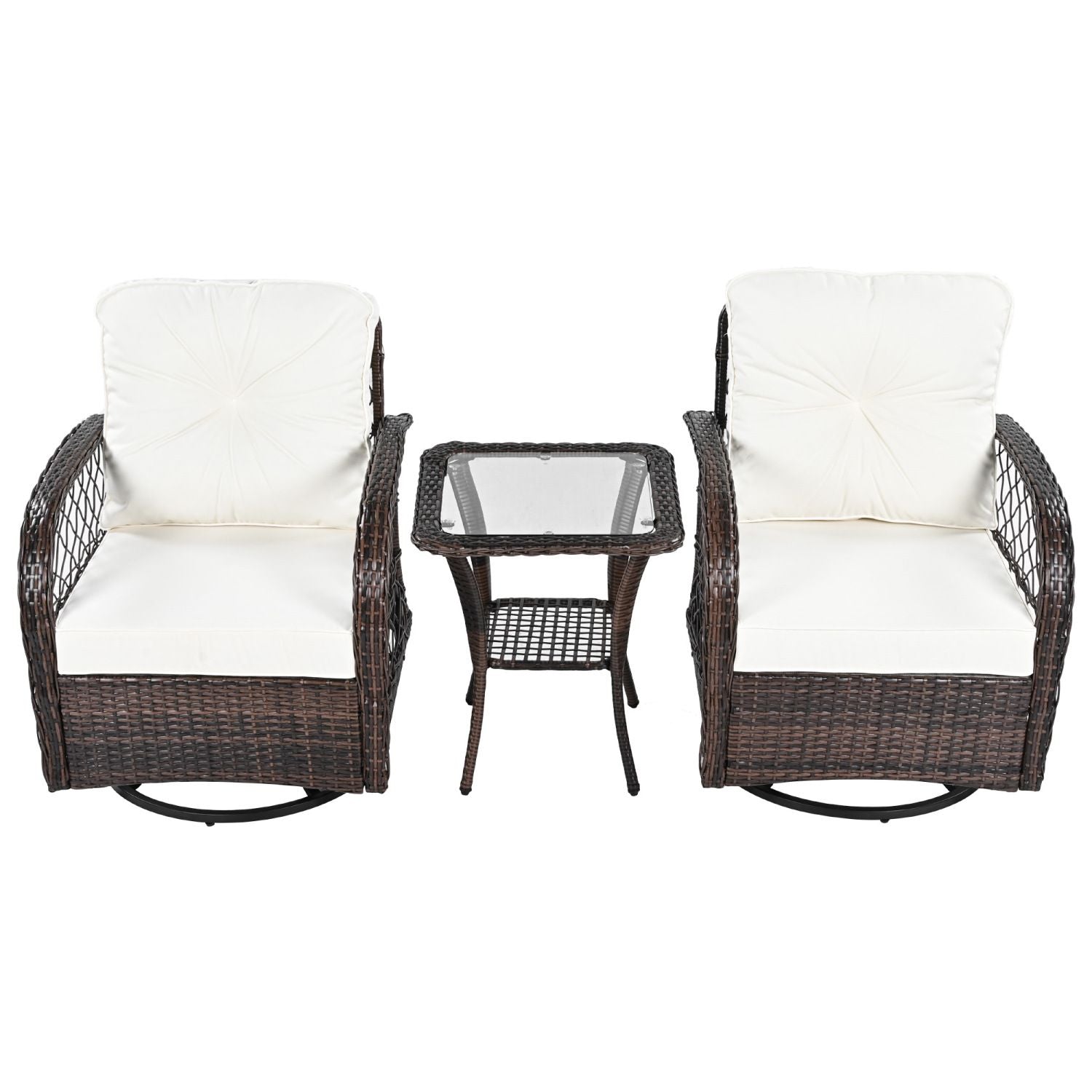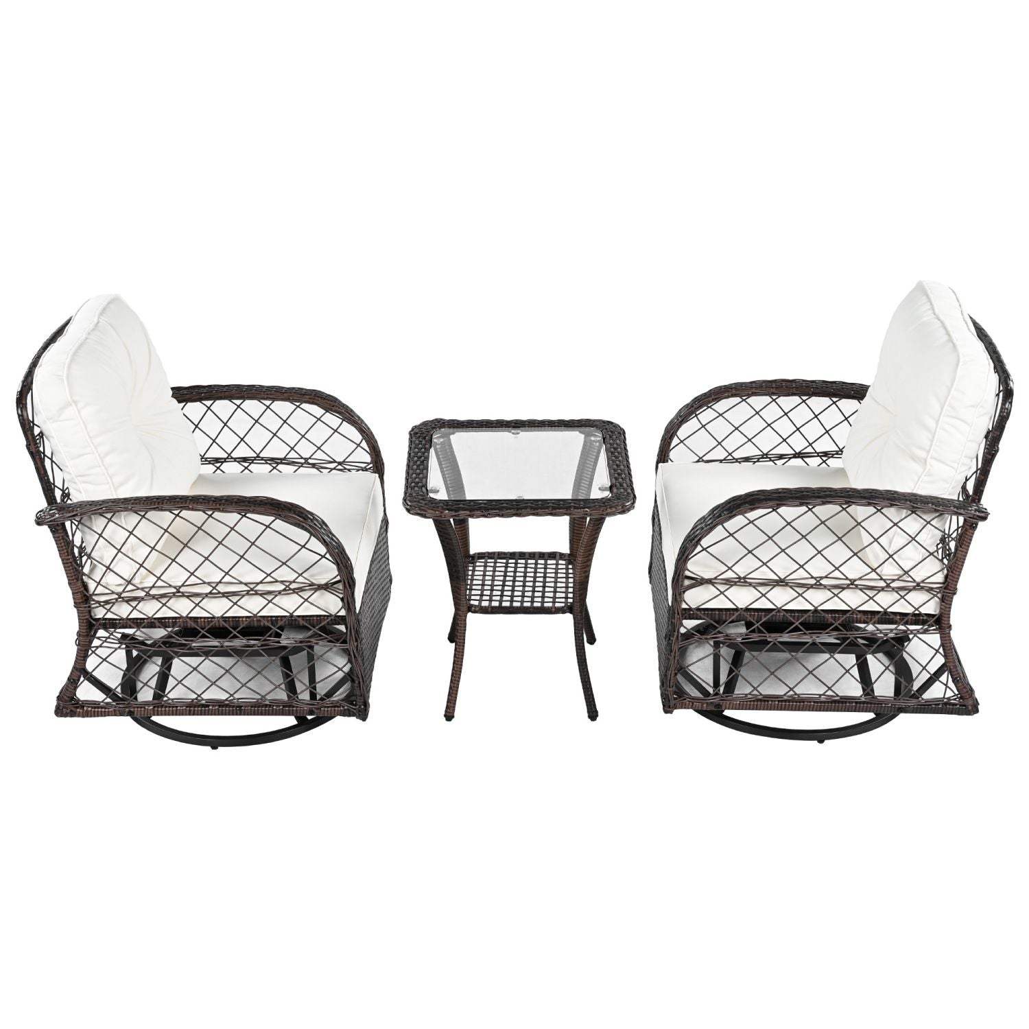 3-piece Outdoor Chair&Table Set Chat Set 2-person Rattan Seating Group with Two Swivel Chairs and a Square Table for Garden, Patio, or Balcony, Brown