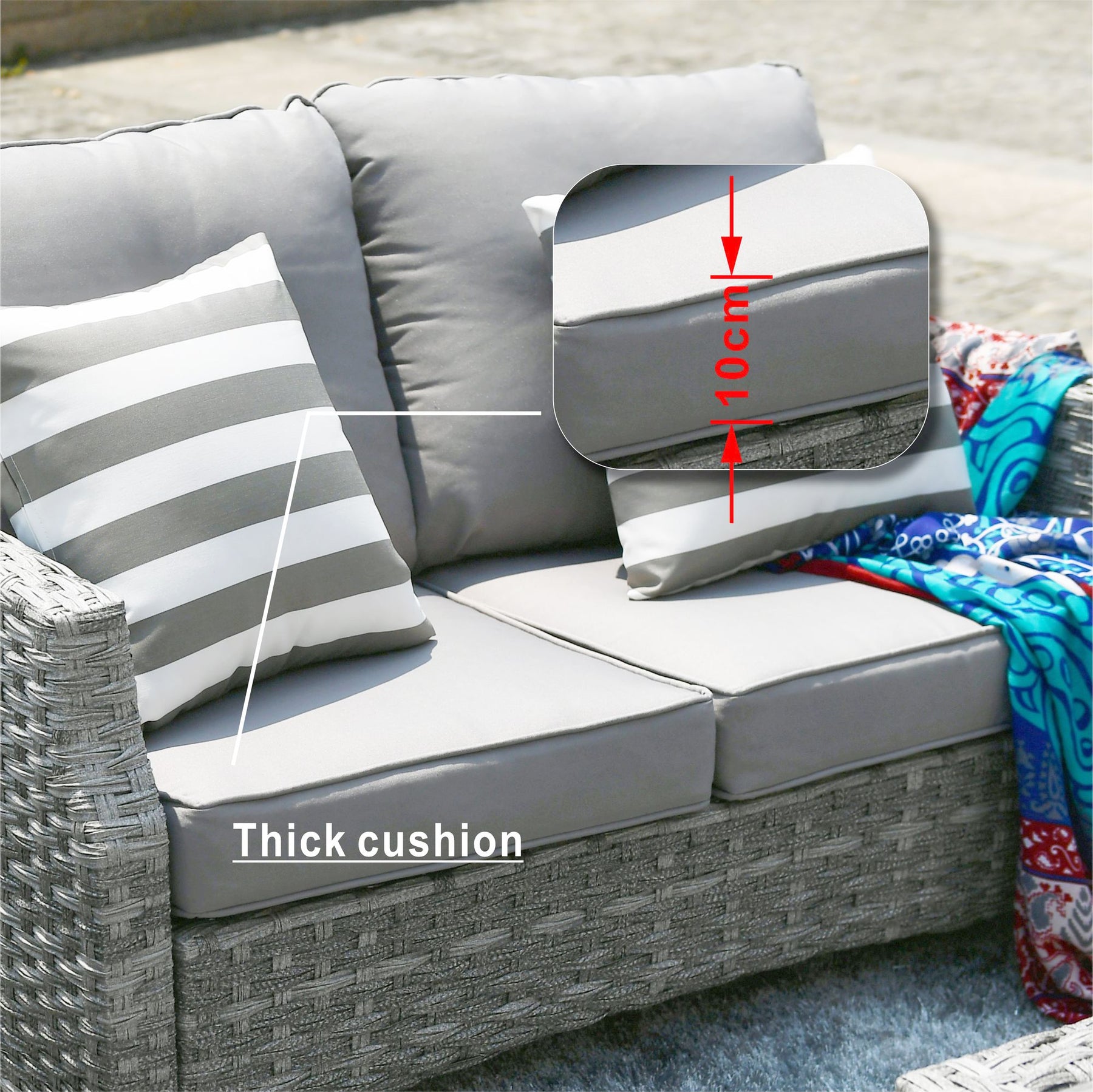 - - Care Instructions: Cushion covers removable and machine-washable; wipe wicker and fire pit with damp cloth