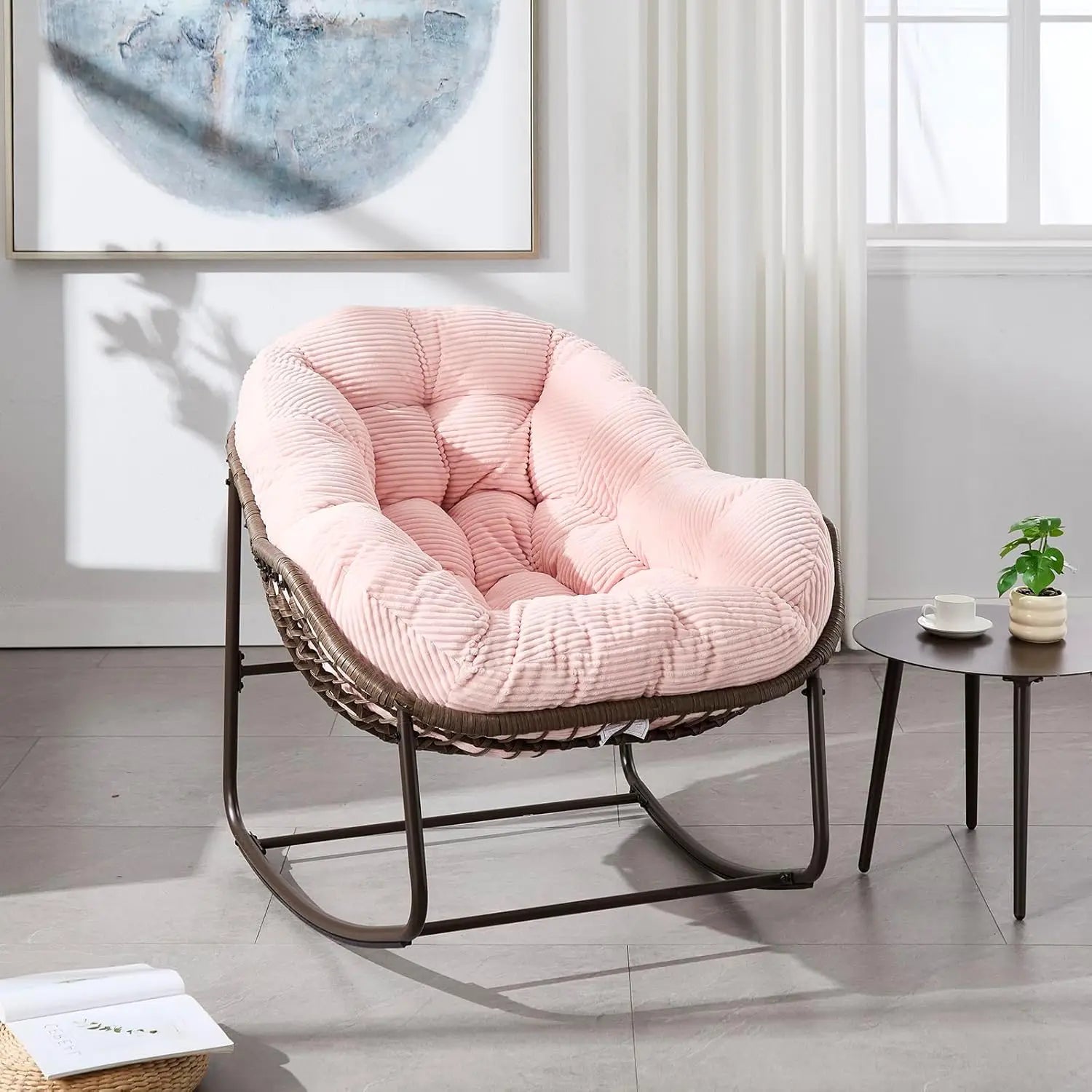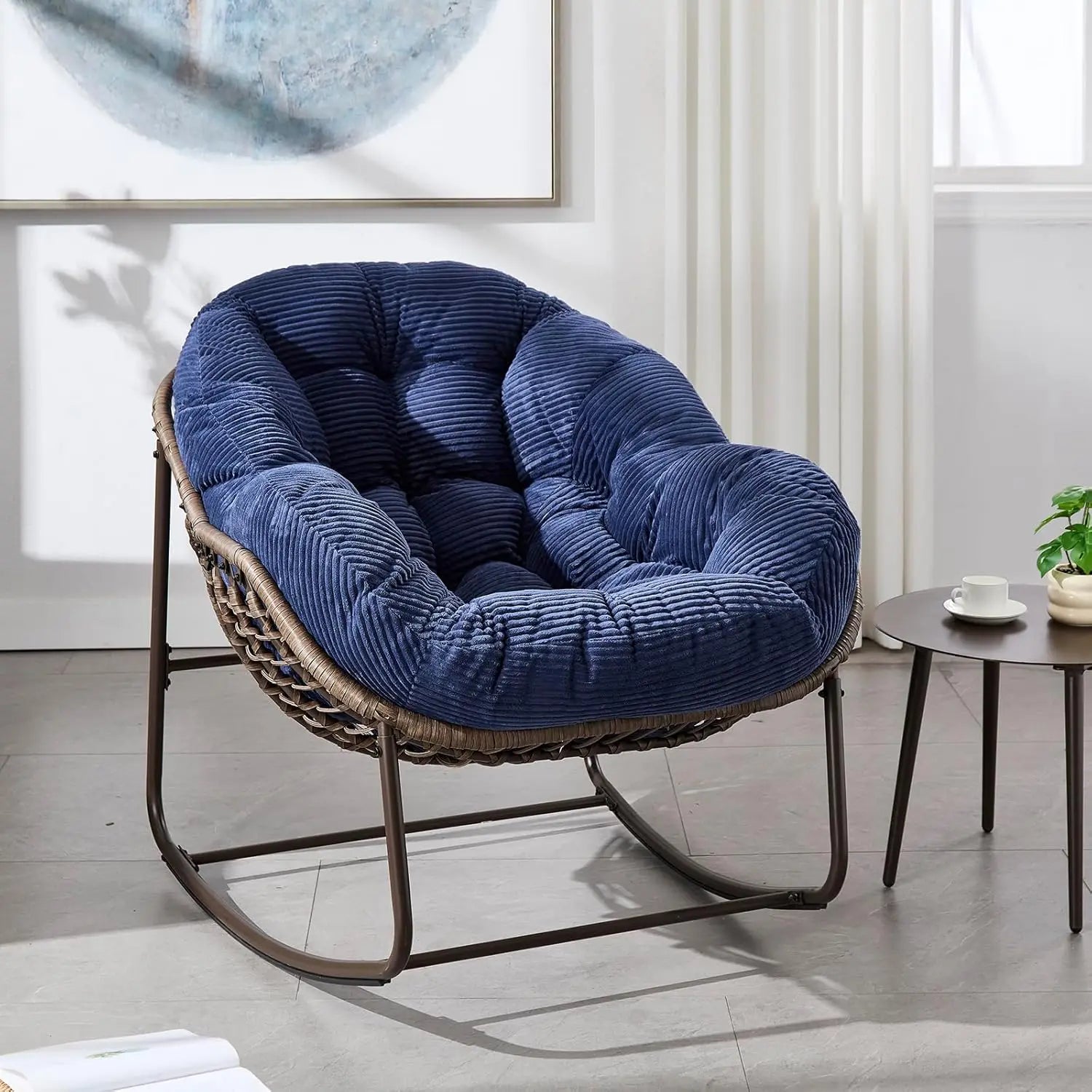 • Ergonomic Comfy Design - Our outdoor rocking chair is egg-shaped designed and ergonomically curved, plus thick padding, you can have a good sense of wrapping when lounging on it, and the oversized seat provides enough space for you to relax. Removable cushion filled with resilient foam allows you to sit more comfortably. The cushion surface uses quality polyester fiber, which is waterproof and more durable.