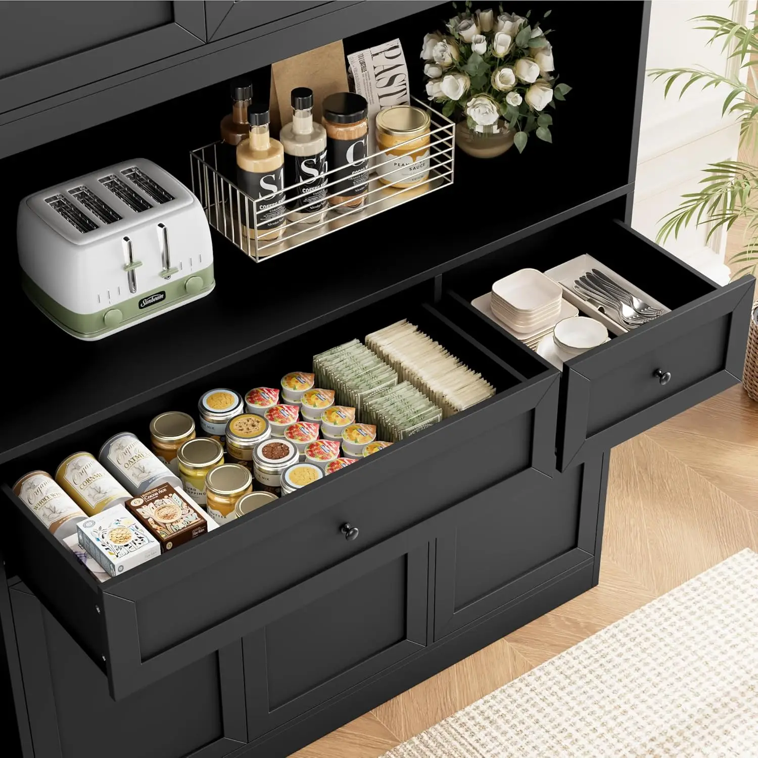 • Hutch Cabinet with Storage: 2 adjustable shelves can be removed or adjusted to 3 different heights to accommodate taller items, and 2 fixed shelves have a stronger load-bearing capacity for storing kitchen appliances, red wine, and other heavier items