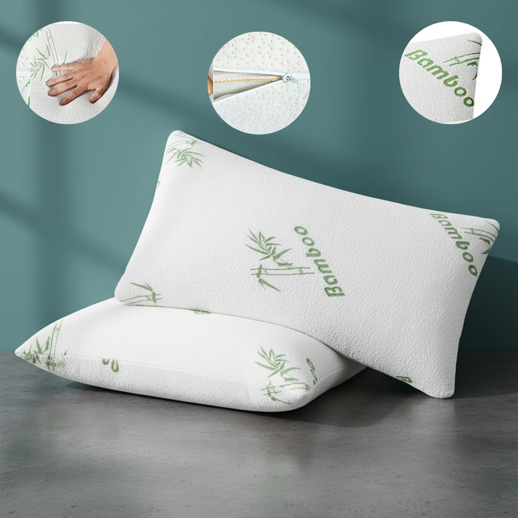 2-Pack Queen Bamboo Memory Foam Pillows – Hypoallergenic Shredded Fill & Washable Cover | Trufairs