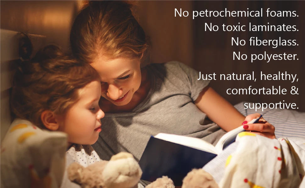 2. TOXIN-FREE – this mattress contains no petrochemical polyfoams, no fiberglass, no toxic flame retardants, and as of January 2025 our updated design no longer contains a rayon-poly blend. Just cotton, wool, natural latex and springs - those are the only ingredients in this mattress.