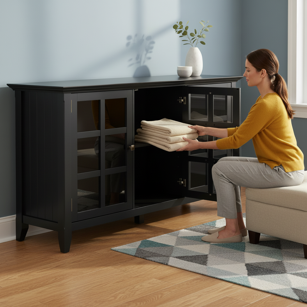 Multipurpose cabinet offers plenty of functional storage. Looks great in your living room, entryway, bedroom, dining room, condo or office