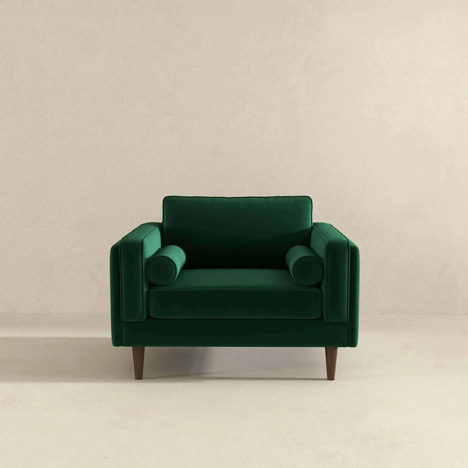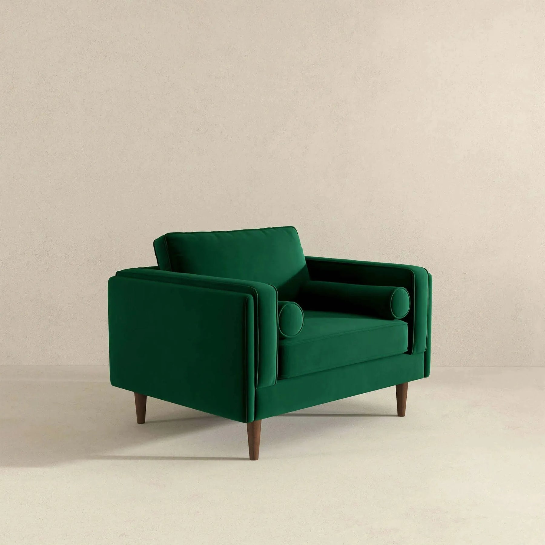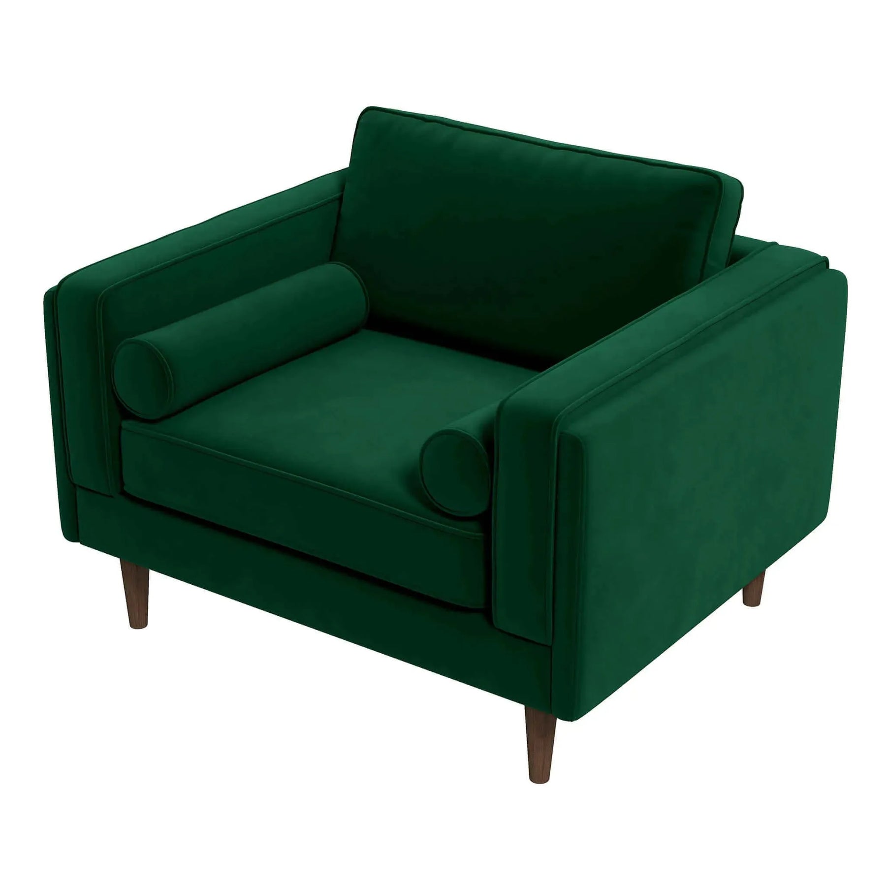 A statement-making addition to any home, the Amber Velvet Lounge Chair channels sumptuous green tones for a look of classic glam in any setting. This lounge chair is perfect for any room, built for functionality and beauty. The deep green color imbues the room with a sophisticated but not stuffy feeling, offering a serene, stylish setting. Upholstered with luxury velvet, the chair has a touch of luxurious pomp, while providing comfort. Its robust construction means its built to last, making it the perfect option for daily wear or for a special occasion. Perfect for a chic living room, a cozy reading nook or a professional office, the Chair complements alternating styles of interior design whether its modern, contemporary, or classic, and even eclectic. Not only is it a beautiful aesthetic choice, they offer incredible comfort for relaxation as well.