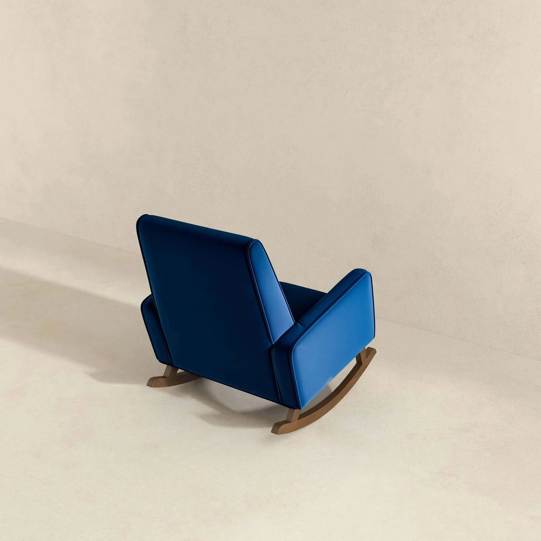 Demetrius Dark Blue Velvet Solid Wood Rocking Chair