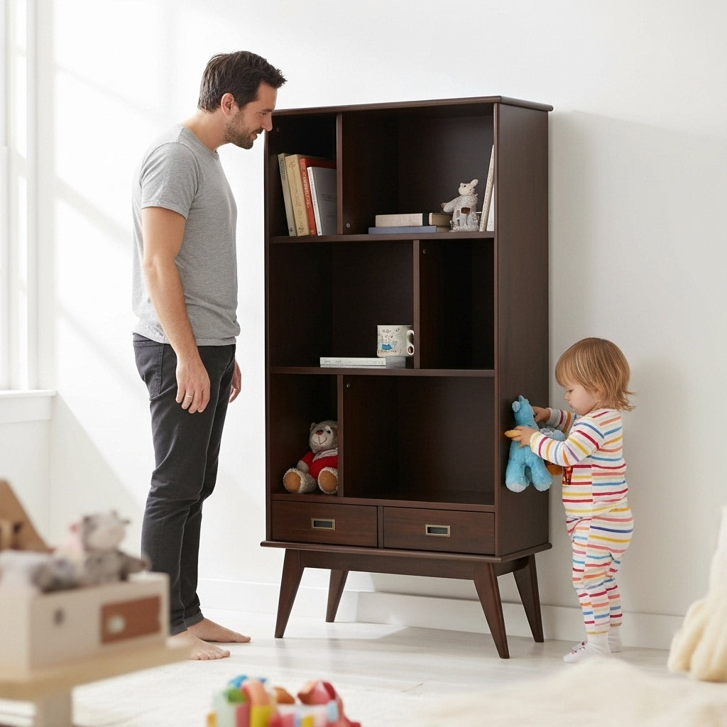 Draper - Mid Century Wide Bookcase and Storage Unit - Medium Auburn Brown