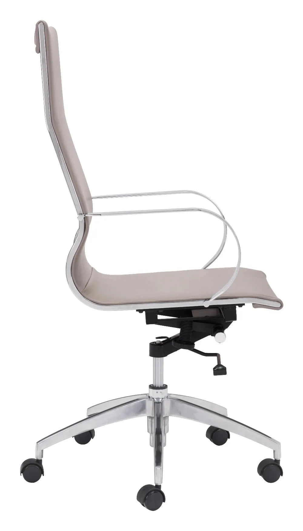 The Glider High Back Office Chair Taupe isn't just about appearances, however — it's about function. High-quality materials for durability and it's taupe so add warmth and elegance to your space. Designed for prolonged use, the high-back style ensures no area of the back, shoulders, or neck is left unsupported, maximizing comfort in those long workdays. Whether it's a statement piece in a modern office, or a functional addition to a stylish home work space, this chair strikes a balance between elegance and practicality. This luxurious yet functional executive chair is perfectly designed to enhance your working atmosphere.